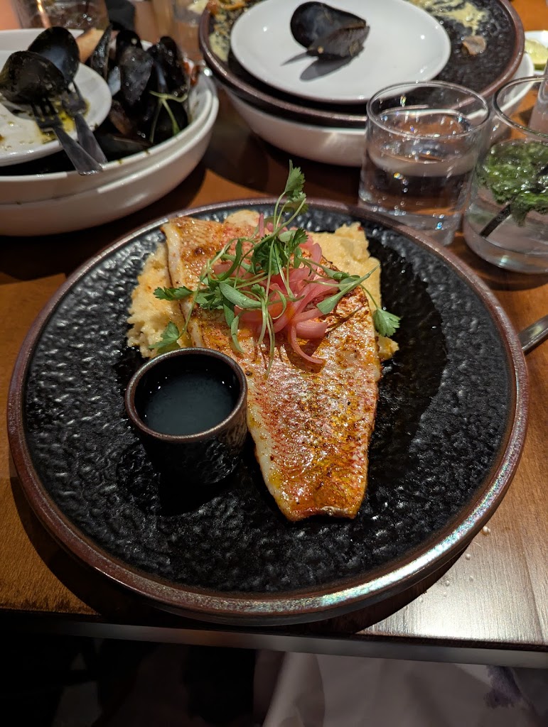 We had a great date night here. The service was slow, but overall the atmosphere was on point. We sat on the rooftop, and it was a nice night, so the wait for drinks and food didn’t bother me as bad. I loved my salmon entree, and the shrimp ceviche was decent. My husband’s red snapper was delicious! The mussels were different than what I’ve had, but my husband enjoyed them. I loved the decor and the drink menu ON POINT! I will stop again!