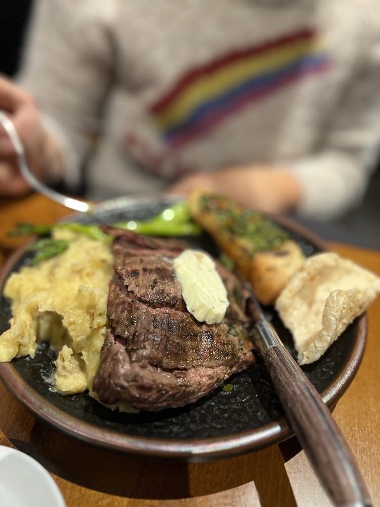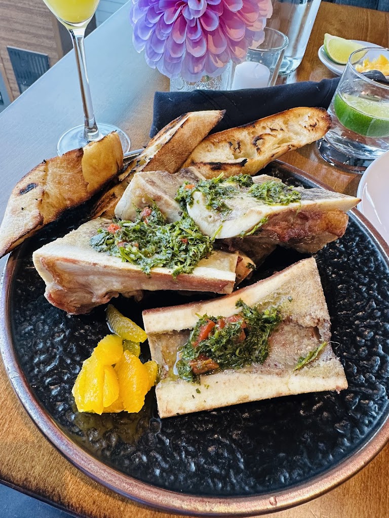 The atmosphere and chimichurri bread is unbeatable. The Red snapper and skirt steak was close to inedible. Very disappointing, because they were the most expensive items on the menu. The steak was over done and super tough (leather like) and the snapper had the skin on and extremely fishy. I’ve never been disappointed with snapper. Our waitress didn’t offer another option besides eating it and paying for it. We were super bummed. Will be back for drinks and rooftop but not food.