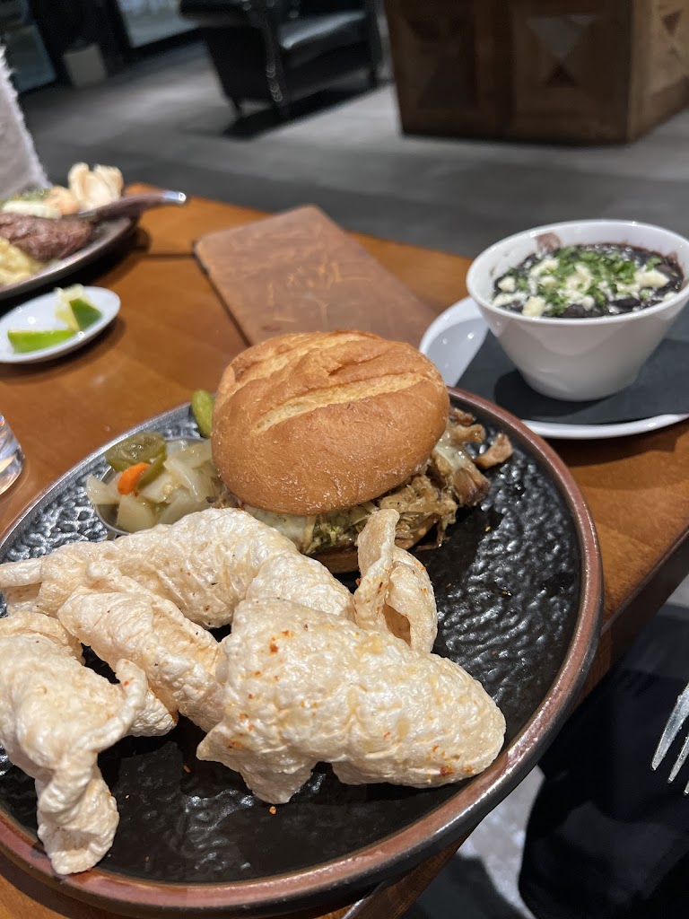 For the price, I was sorely disappointed. Also, some of the dishes are kind of an insult to the actual Latin food they represent. The Cuban, for example, is just a pulled pork sandwich lacking all the nuances that would make it an actual Cuban. The mole sauce is laughable, which is probably why they give you so little of it with the pork chop dish. They charge $10 for bread....bread. That's actually on their menu. I live in the apartments below, so it's convenient, and the atmosphere is cool. Service is nice, but usually fairly backed up, and the food is woefully overpriced for what it is. The late night menu is reasonable. They should just make that their day menu and stop trying to be high dining. Or go to Oaxaca and bring back some real Mole, lots of it, so you can actually cover a pork chop with it.
