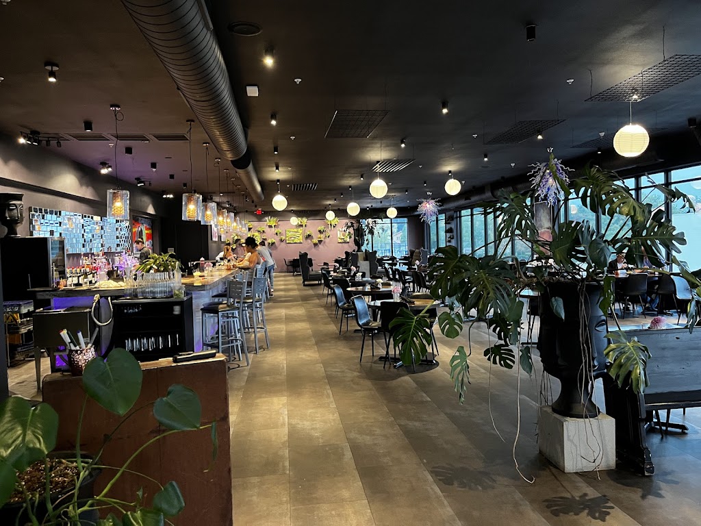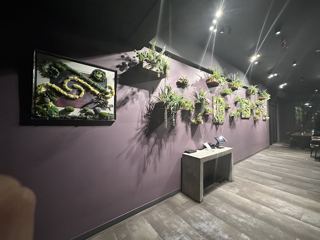 Parking and finding the place was laughably confusing. If I owned a restaurant I would want people to actually be able to figure out how to get there. The signs for parking are black with purple lettering, so you can’t actually read the words “velveteen plum.” All you can see is that it says “BANTR” on it, the name of the apartment buildings. The signage outside the building points to the wrong door also. Nobody at the top to greet you or anything either.