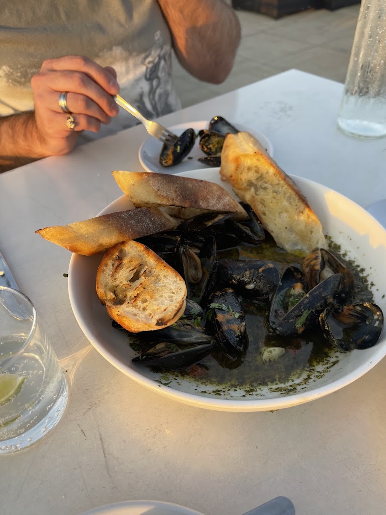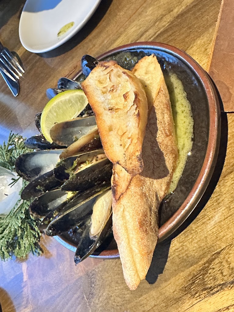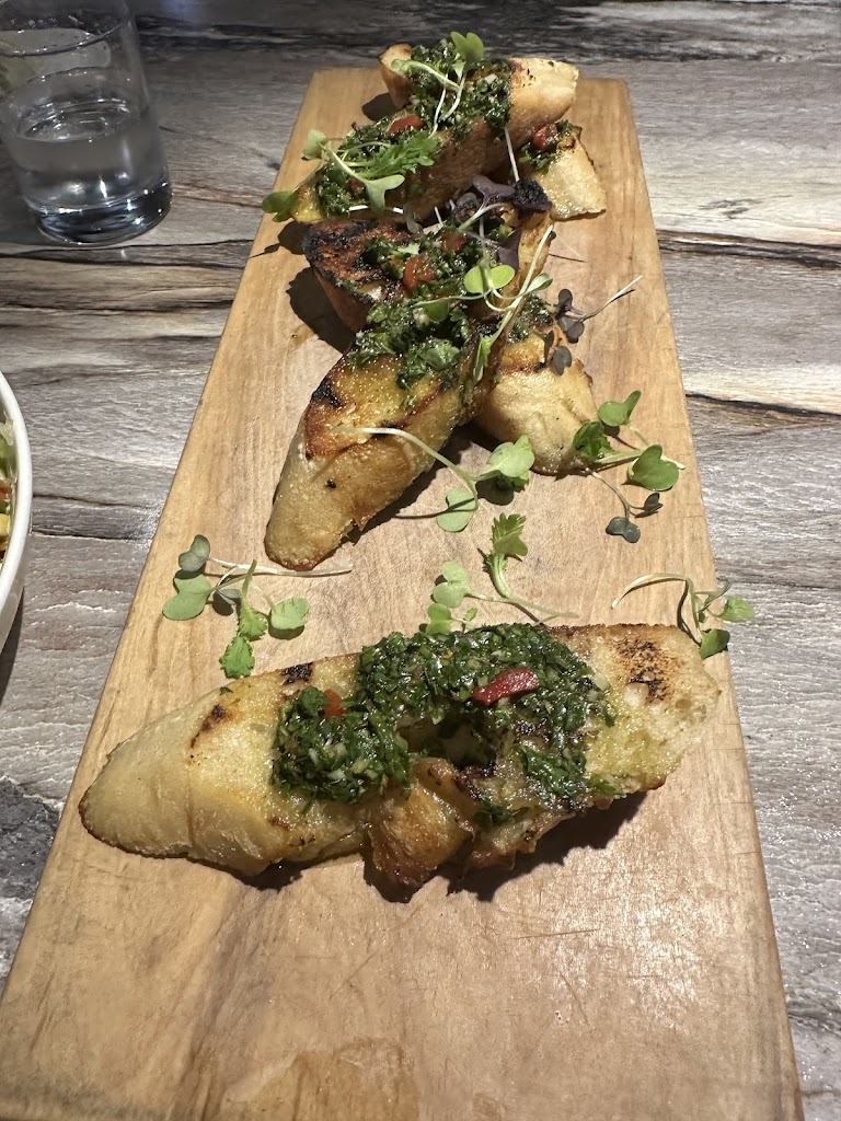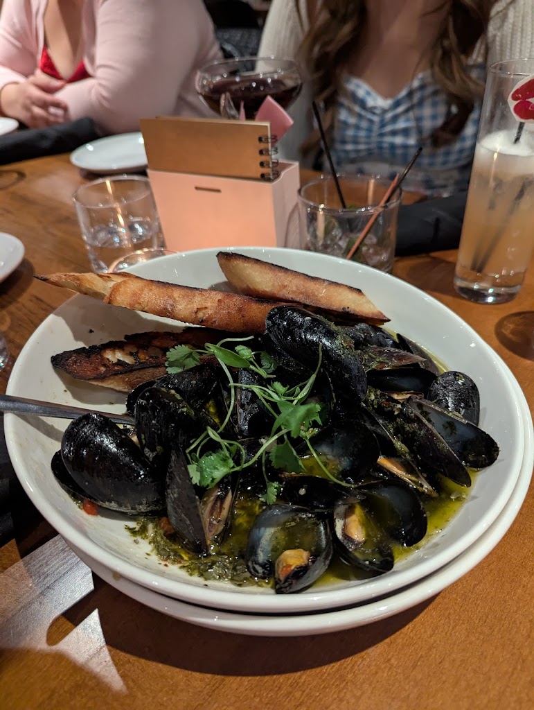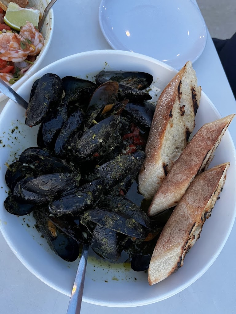 We ordered the bread with chimichurri, mussels, shrimp ceviche appetizers, ahi tuna entree and the chocolate mousse for dessert
