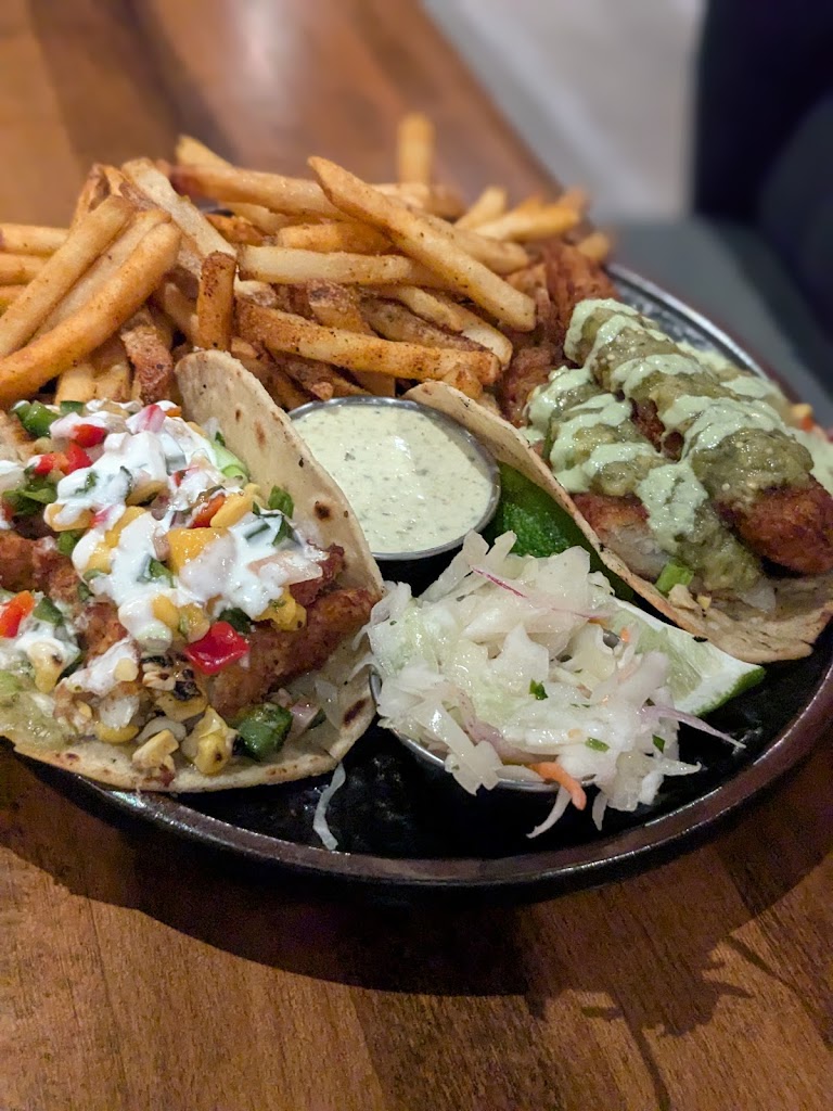 First visit based on a friend's recommendation. Located on the upper deck of an apartment complex with great views of Wausau. We sat outdoors despite the threatening rain. Cheap metal chairs and tables are not super comfy but practical for a roof top deck. Tuna tartare appetizer and fish tacos were yummy. Adobo fries a bit over seasoned-I'm sure they promote beverage purchases! Decor is eclectic bordering on disjointed. Friendly and attentive service. Will return to try a dinner service.