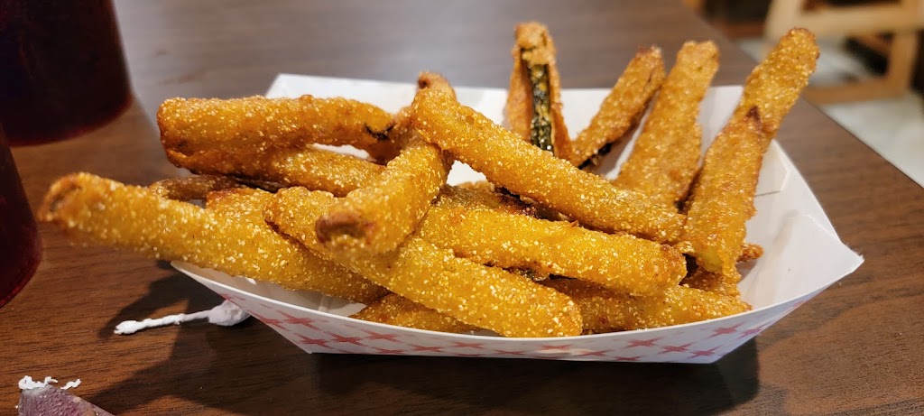 Tavern food with great friendly service. Nice clean older building. The food came out quickly. The fried pickles were great and a little unusual from others I have had. They were more like sliced spears than pickle chips. The bacon cheeseburger was a nice thick patty with hickory smoked bacon. Parking is available along the streets.