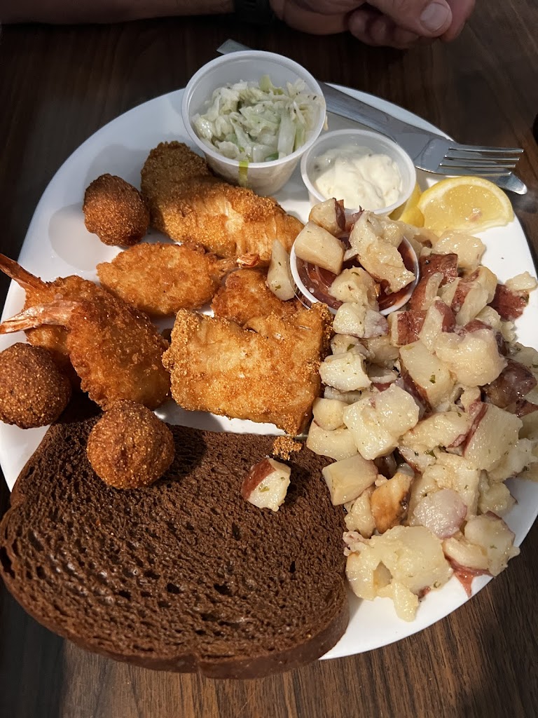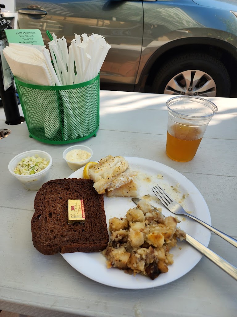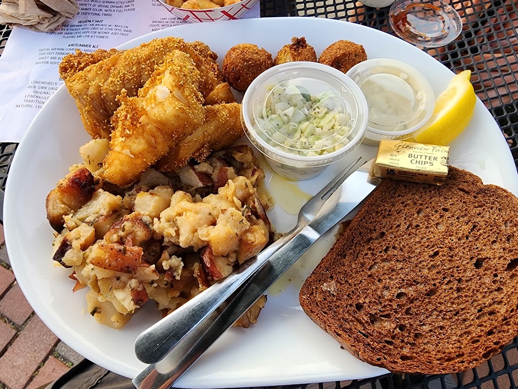 Went for their Friday Fish Fry. Was not disappointed. Four nice pieces of cod, slaw, red potatoes, hush puppies and dark rye bread. Classic. Sorry no pics, I was in too much of a hurry to eat it.