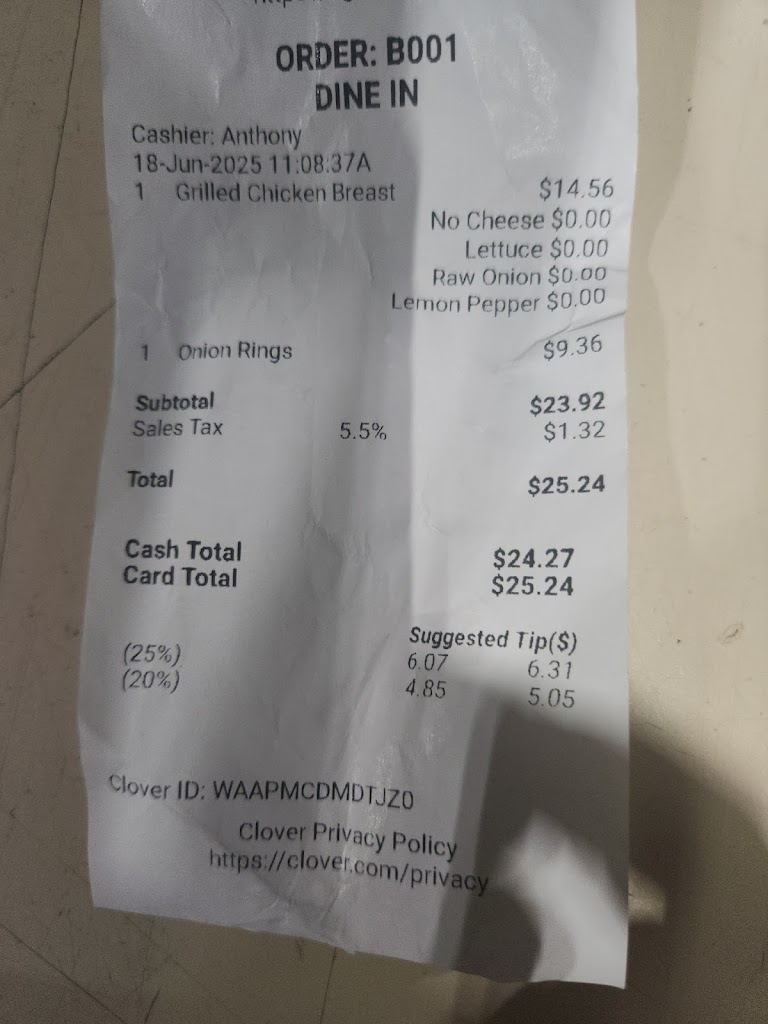 This place used to be great. Not anymore. They removed some of the best items on the menu. I went today and had the worst chicken breast sandwich I've ever had in my life. Way over seasoned. Then I get the bill! $25.24 for onions rings a horrible chicken sandwich and a lemonade. This was my last time going here. I don't think it will be long before we say goodbye permanently to this once great establishment. Completely disappointed!