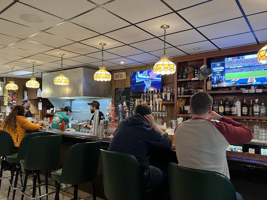 You are in your yoga gear or better yet your tracksuit... you want a cozy spot but good naughty food. Well, head on over to Village Green! Great, friendly service and pretty good pub burgers. Besides burgers they have other items on the menu; all pretty much fried bar food. The fish fry is ok, but definitely not why I come here. And no I have never ordered a salad or such thing here, and don't plan on it. You can, but I come here for the burger! The atmosphere of the place is down to earth, old school tavern and I like it like that. Like the bar area seating close to action. Think till recently they were not taking credit cards, they have a cash machine inside but be prepared before you go. When I want a burger this place pops into my mind along with only 2 other spots in town. As far as drinks go, you are safer sticking with beer or a cocktail. Enjoy!