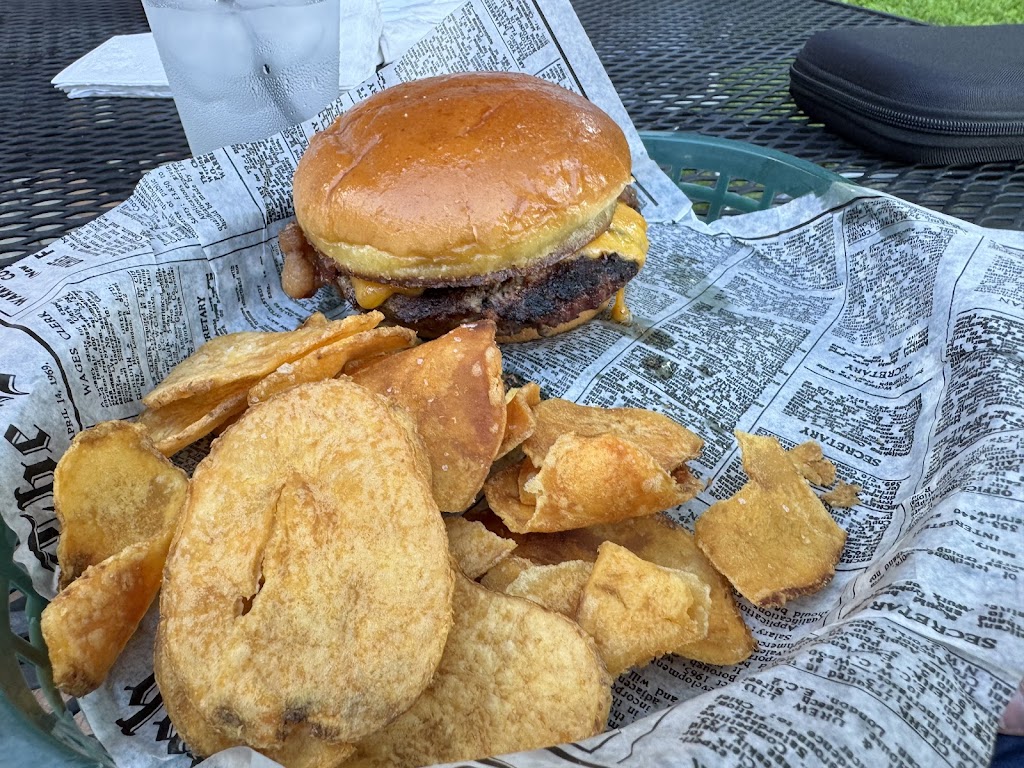 Sat outside listening to live music, visiting with good friends, and enjoying good food and drinks. Perfect evening.