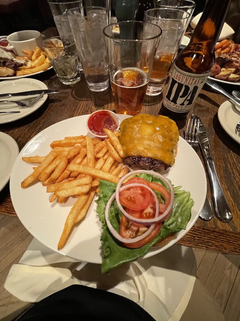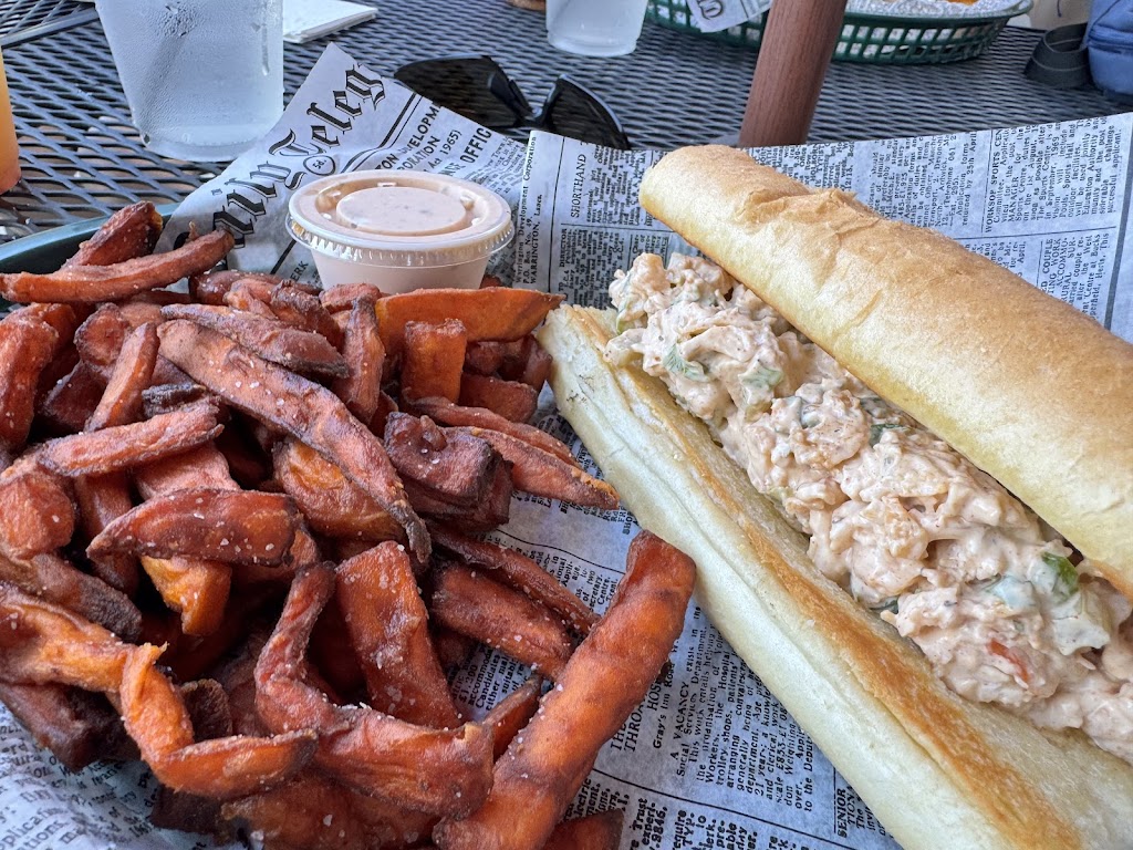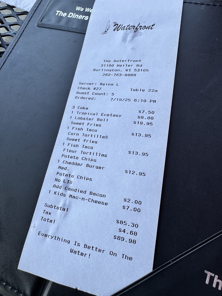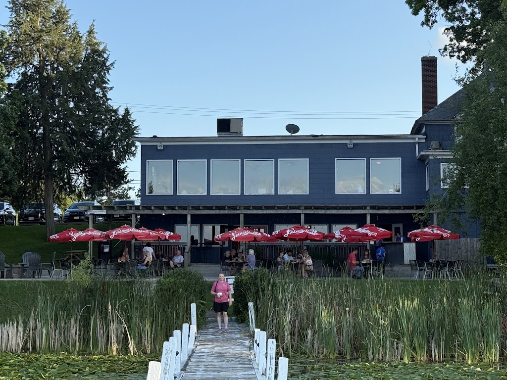 Nice place with a great view and great service. Two dining room options with slightly different menus. We ate downstairs/outside. Lots of outdoor patio seating. Beautiful view of Brown’s lake…felt like you are in your own backyard. Good fish tacos and lobster rolls. Decent prices overall. Soda only $2.50! And great service. Nice place. Upstairs dining room had prime rib, didn’t get to see the price of that.