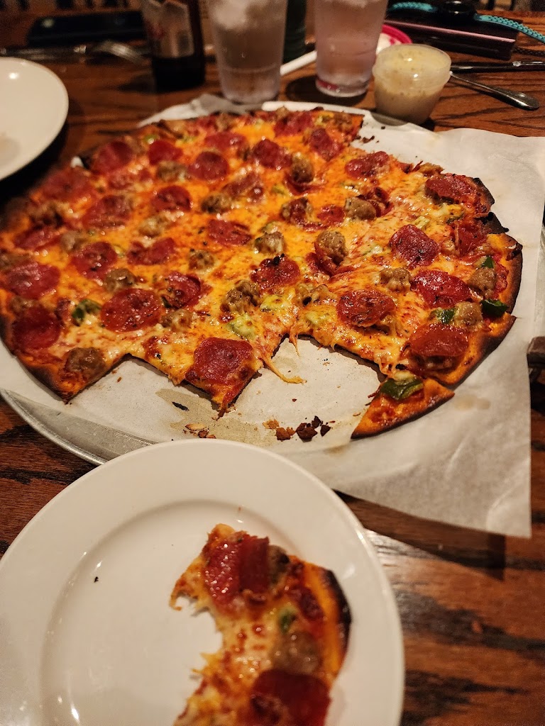 It was sort of our fault but we got rushed in and out because we were coming after graduation with 10 people and it was a little bit of a cluster… Anyway we had drinks that were decent the waitress was friendly enough but they ended up forgetting a pizza so it prolong the visit…anyway, you should go, it was fine