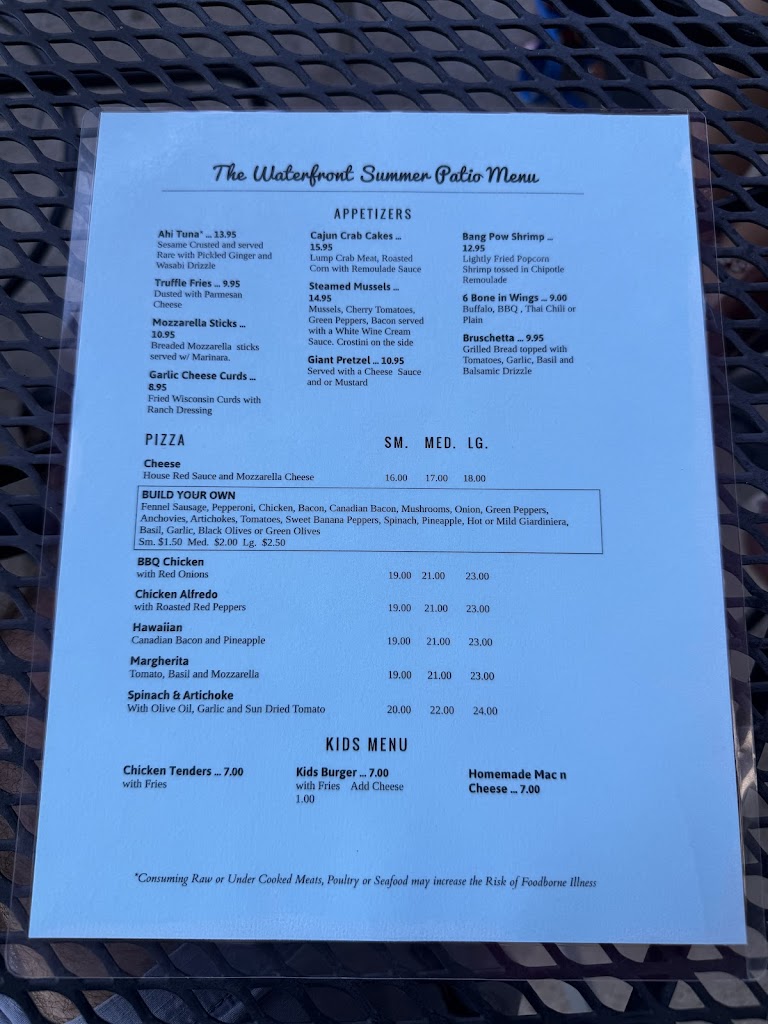Menu a little limited but beautiful lake front views and the food was excellent. Staff was Awesome.
