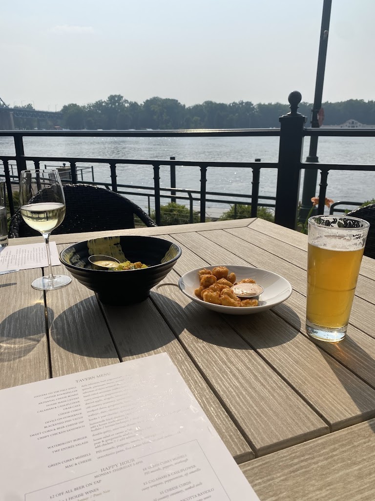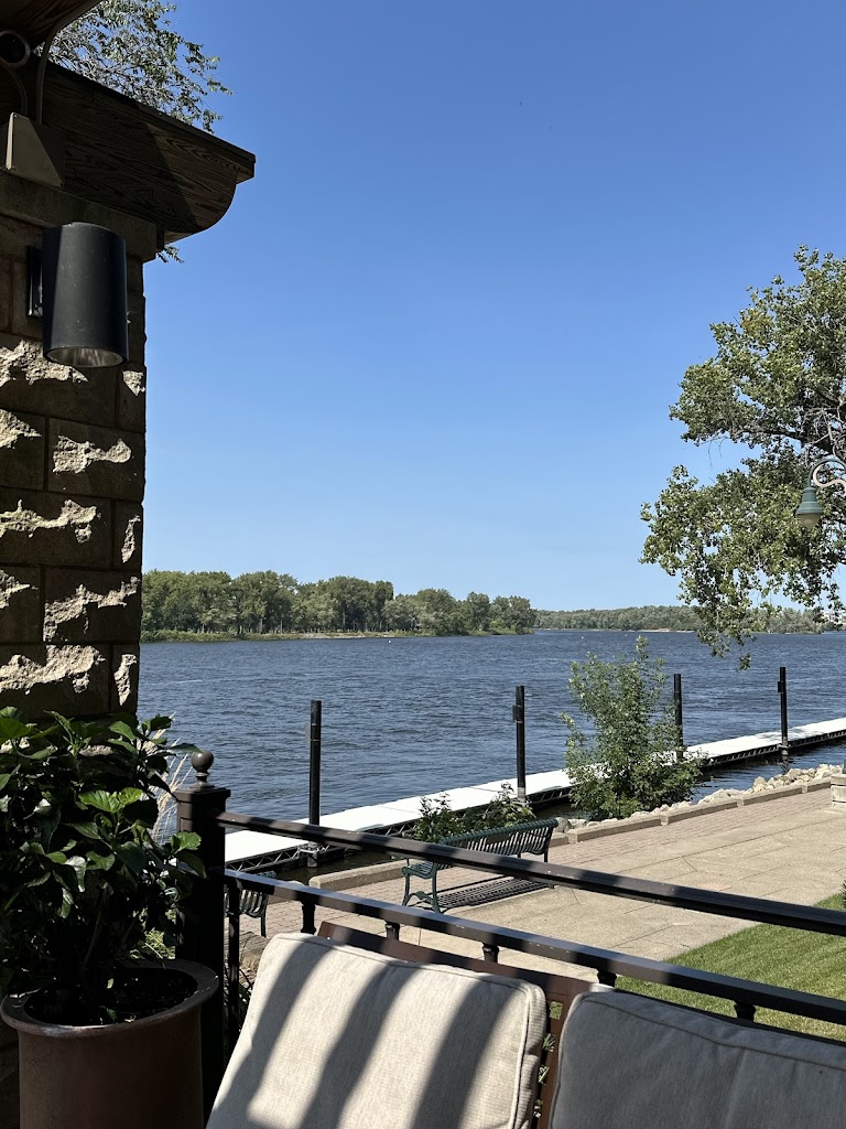 The Patio at the Waterfront is a great spot with amazing views of the Mississippi River. They have fantastic happy hour deals and cocktails, especially their Wisconsin Old Fashions. The food is delicious, and the service is really friendly and attentive