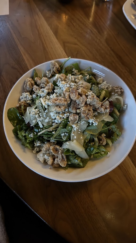 We ordered devil on horseback (was very good I would recommend this), crab cakes (were really bland) and salmon with pumpkin gnocchi (was nice and flakey cooked to temp, I personally didn’t like the pumpkin gnocchi others at our table enjoyed it) my husband and I shared the salmon and they split it into 2 dishes for us which was very nice. We also got 1 salad and 1 cup of beer cheese soup (would recommend the soup!) We were here quite a long time about 2.5 hrs and our waitress disappeared by the end of the meal when we were trying to get the bill. We spent over 100$ for two people the food and 1 beer. Was a little disappointed but we might be back in the future.