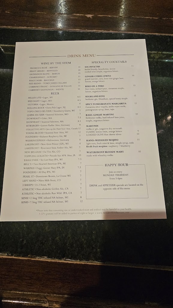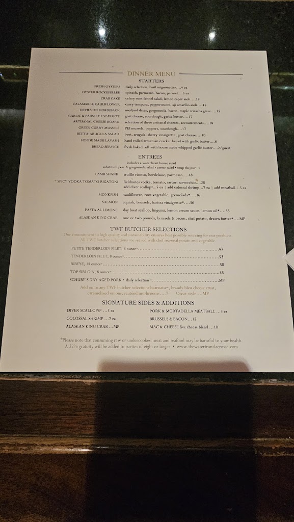 The Waterfront has been our go-to spot for high-end dining in La Crosse, and we’ve always considered it a favorite. The service and atmosphere are consistently excellent, and we’ve had many memorable meals here.
