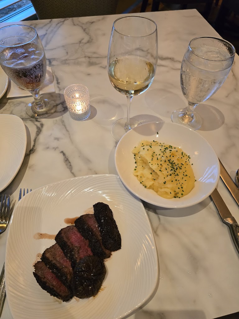 If you cook steak as a staple on the menu the temps have to be better. Our well was pink. The med rare was black and blue and my chicken must have been cooked a week before they served it to me. It was drier than Death Valley. :-(. The other items were good but we came for the meat and it wasn’t great. All the other items got it to three stars. But the meat abuse is unforgivable.