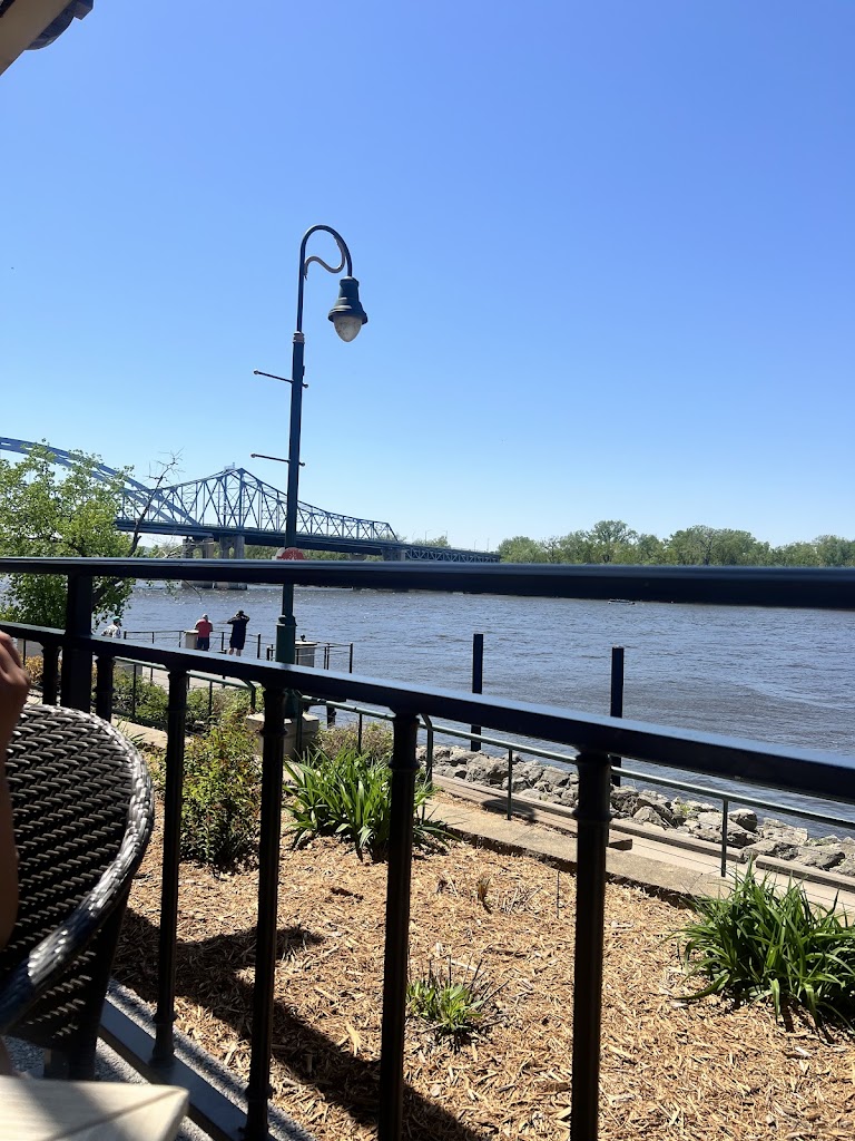 Stopped for lunch and everything was wonderful. Beautiful, sunlit dining room, a cozy looking bar and lovely patio overlooking the Mississippi.