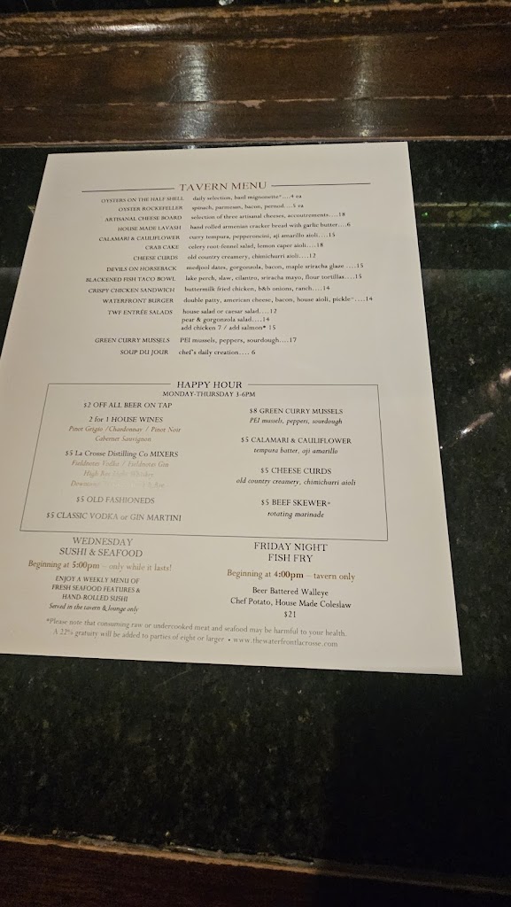 We hope this is just a one-time issue or a tweak that can be refined, as we still hold The Waterfront in high regard and look forward to visiting again. It’s still one of the best dining experiences in La Crosse, and we’re rooting for it to stay that way.