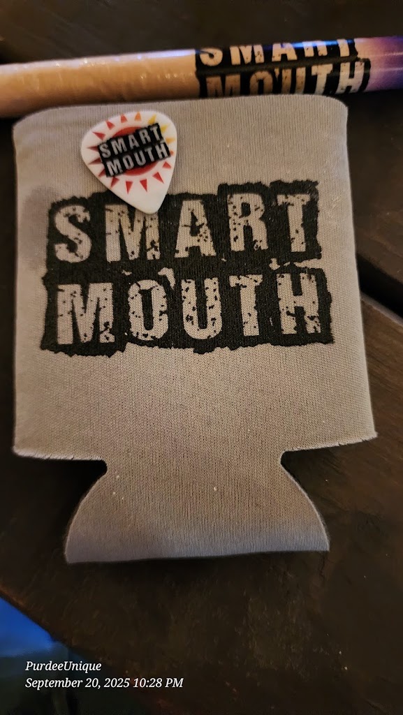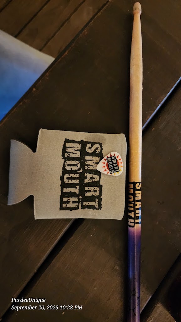 Went to see Smart Mouth for the 1st time and they we were out on the dance floor all night...so good. And we got a cozie, a guitar pick and my friend even got a drumstick.