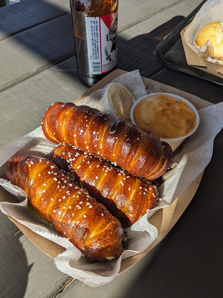 There is no table side service here. You order your food at the window by the stage and you order your drinks at the bar, like a festival venu. I had the salmon tacos which we terrible. They use smoked salmon which is served cold and extremely salty. They sprinkle a pinch of onion ant tomatoes the drizzle a dill sauce over a single flour tortilla. Not worth $6.00 a taco! Give me some fresh fish for that price. The cheese curds were like chewing fried rubber balls. We had to bus our own table. I asked the bartender what pilsners they had in stock. She said they have no pilsners! WHAT?? there was Miller, bud etc right in front of you! Train your staff before giving them a bartending license!