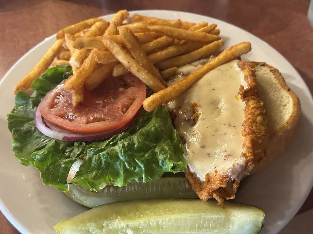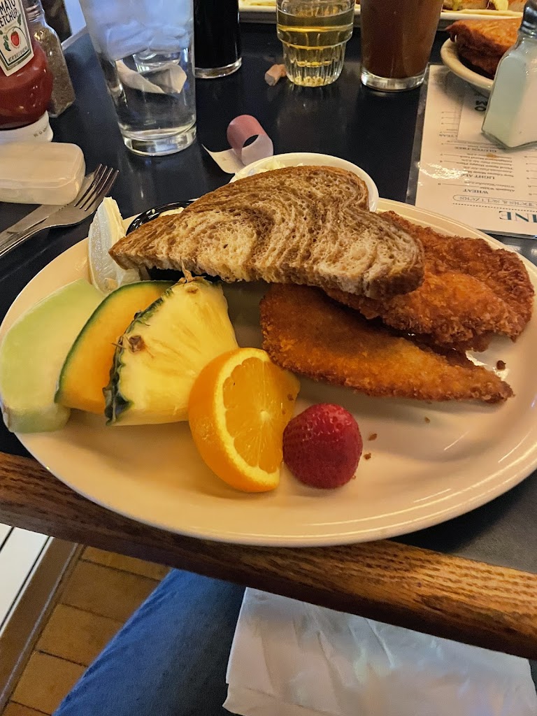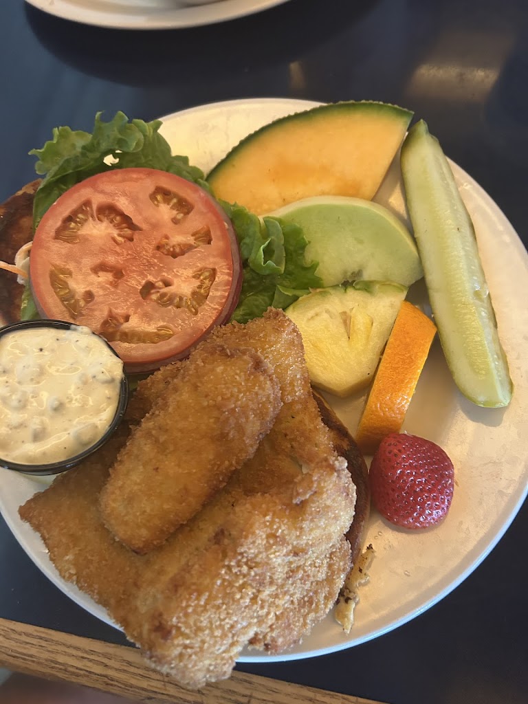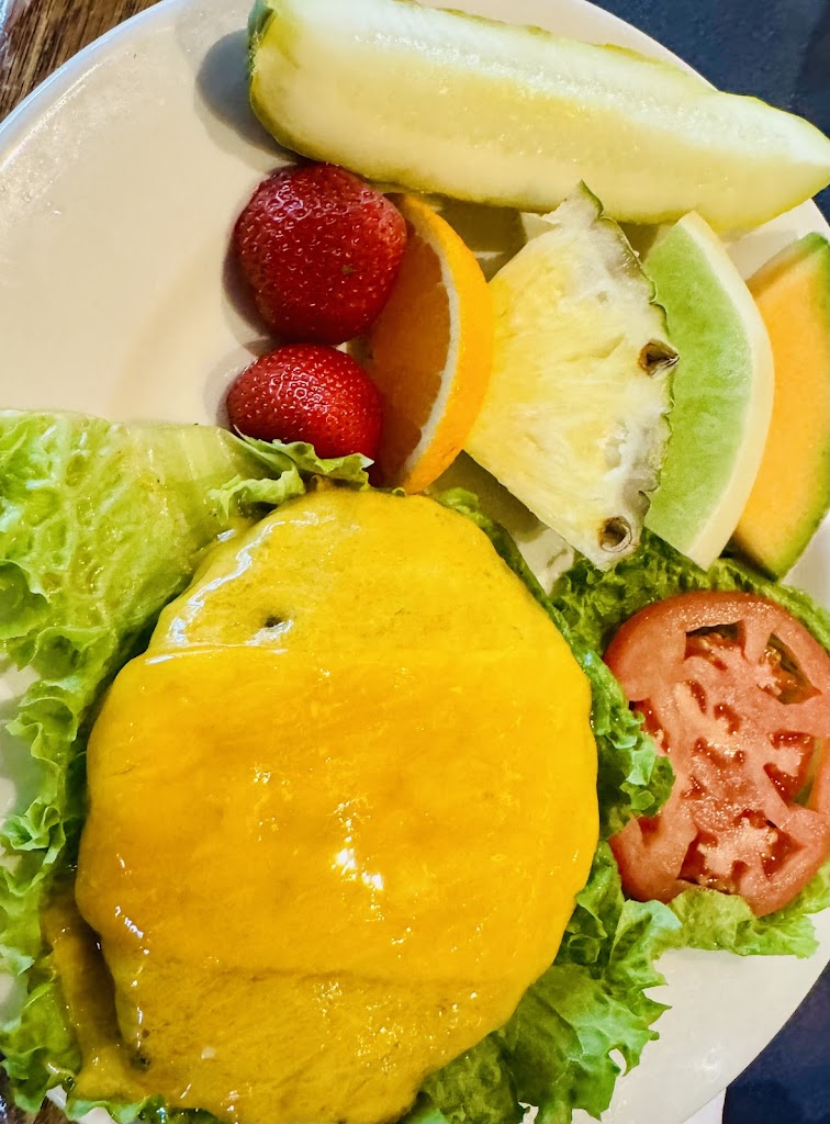 Did late lunch....had the grilled chicken breast sandwich with Swiss.....excellent! Side of fresh fruit was very good!