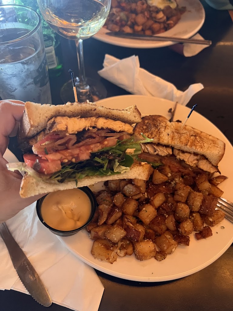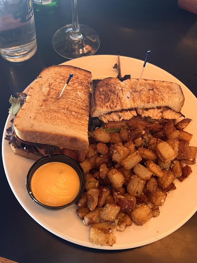 The atmosphere was good. Food was delicious, but the salmon on the salmon BLT was really small and barely any bacon. The southwest chicken salad was fantastic.