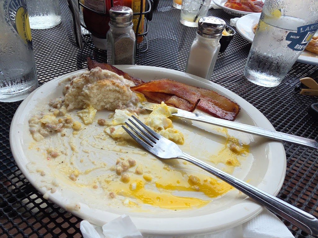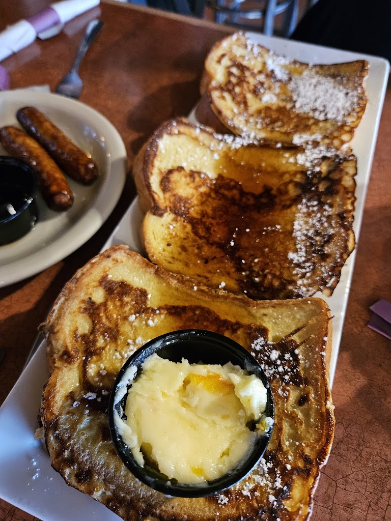 Edible food, I guess technically better than I could cook at home, they must have just redone the menu or the recipes food was more dry and bland the we remembered. When the food came out many parts like syrup were missing, water glasses were constantly empty. Nobody finished their food and the portions were normal.