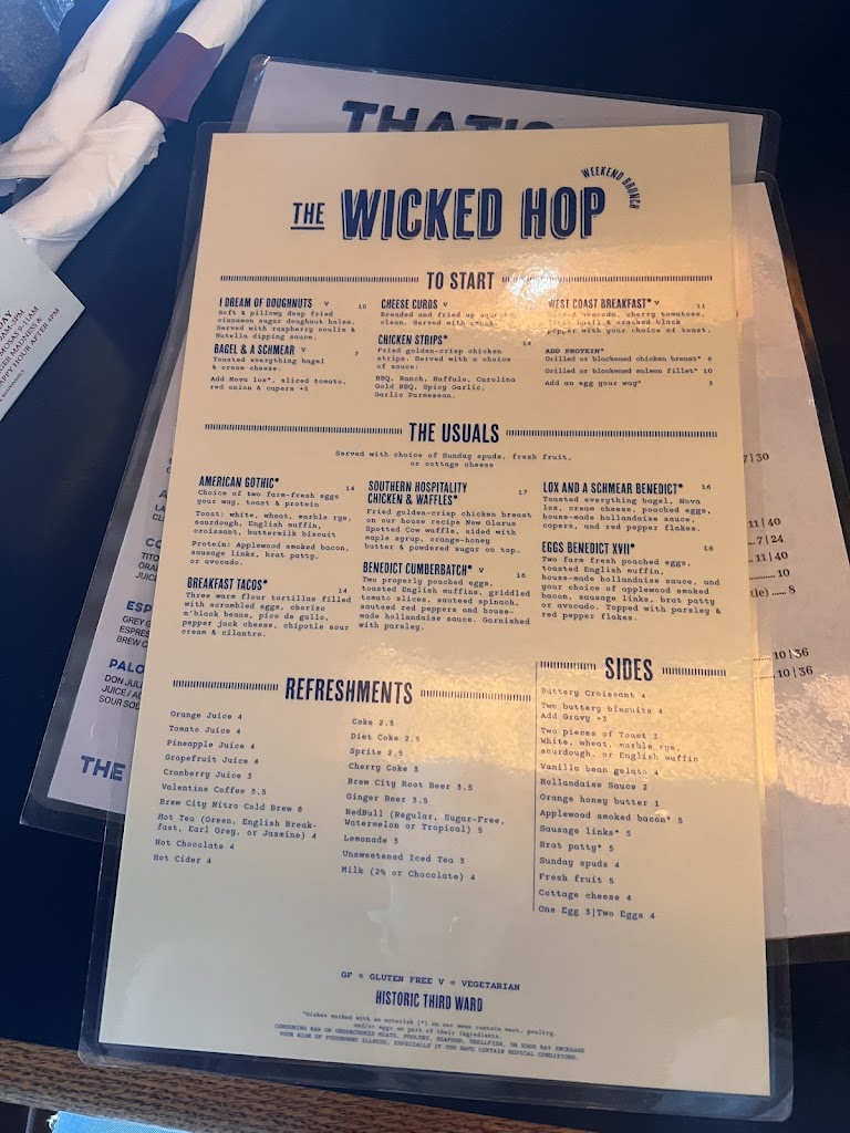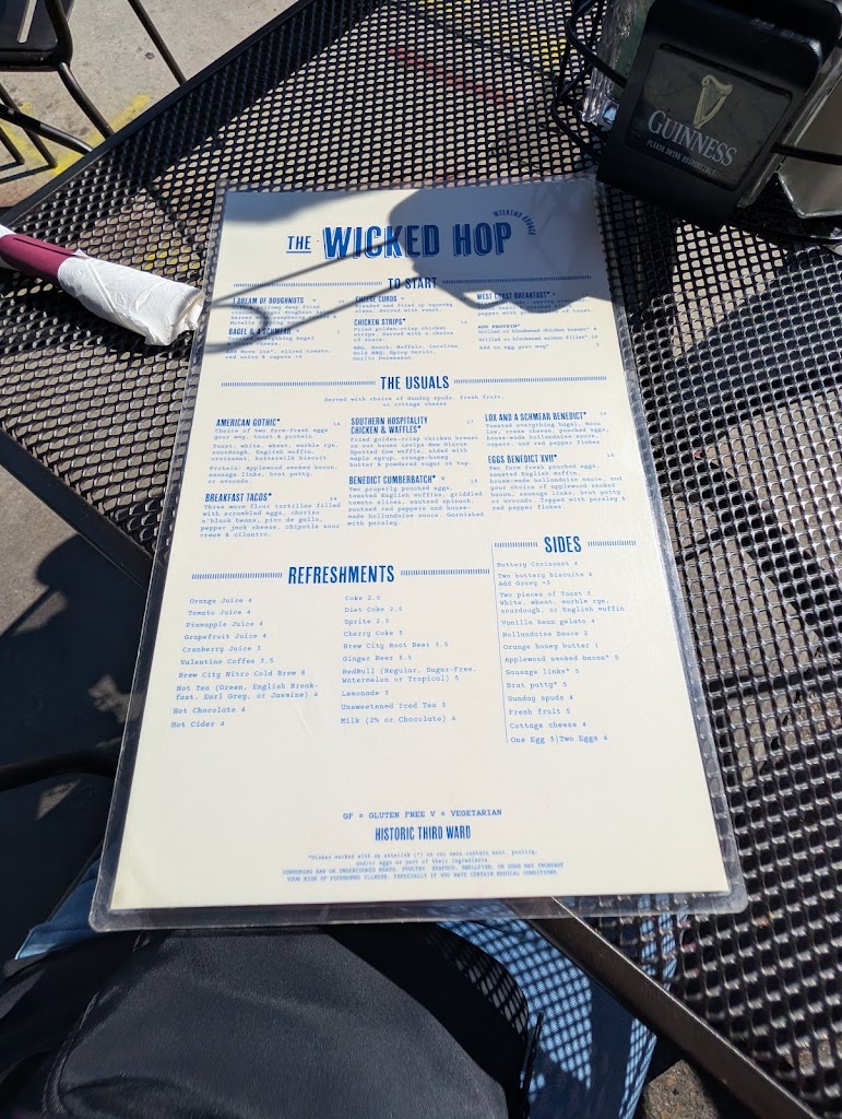I recently visited Milwaukee to see the Neil Young concert and stayed near the Third Ward. We ended up at the Wicked Hop for brunch on Saturday and it was a very pleasant experience. Our table was outside so we were able to people watch and see the art festival as it got up and running that morning. The service, food and atmosphere were great - Wicked Hop has a very relaxing and chill vibe. There were so many good choices on the menu it was hard to pick - I ended up with an ice tea and the Crescent Wrench which is essentially a scrambled egg, cheese, and I choose avocado on a buttery croissant (bacon or sausage was also an option). I opted for a side of fruit which had generous portion of pineapple, orange slices and melon. I would definitely recommend this as a must visit stop on your next trip to the Third Ward. I’m looking forward to my next selection and, on my next visit, I’ll try one of their Bloody Mary’s. Cheers!