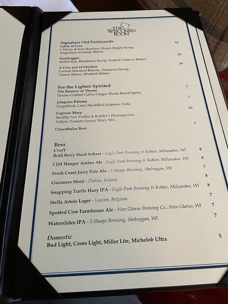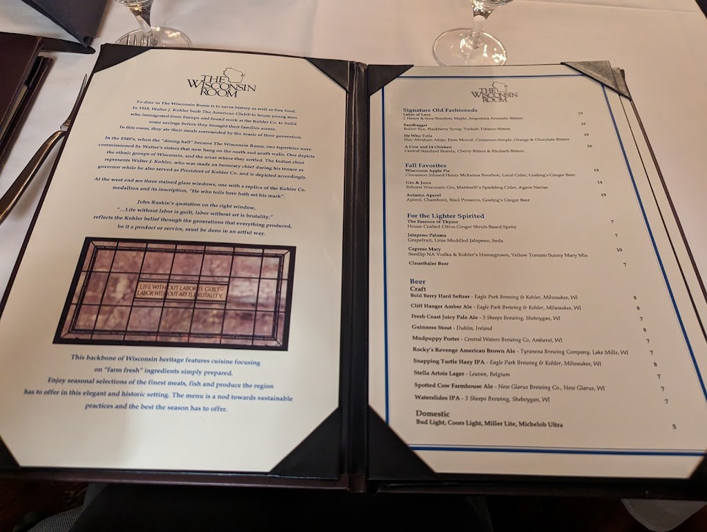 If you’re staying in Kohler and want a truly great meal, skip this spot and head to Blackwolf Run instead. The food there is significantly better.