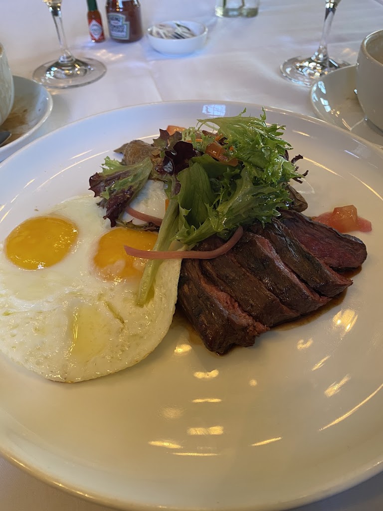 We had breakfast here. The eggs were not good, they were runny scrambled eggs. I couldn't even eat them, they were terrible. One friend had steak and eggs, steak she said was good, she also hated the eggs. The money bread was not great either. For the price it was not worth it for breakfast.