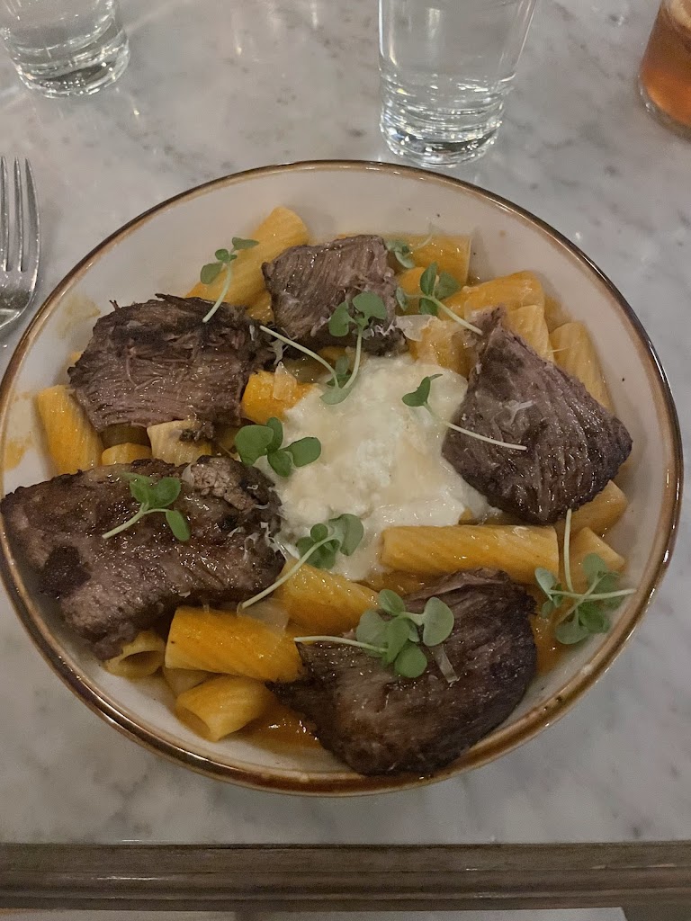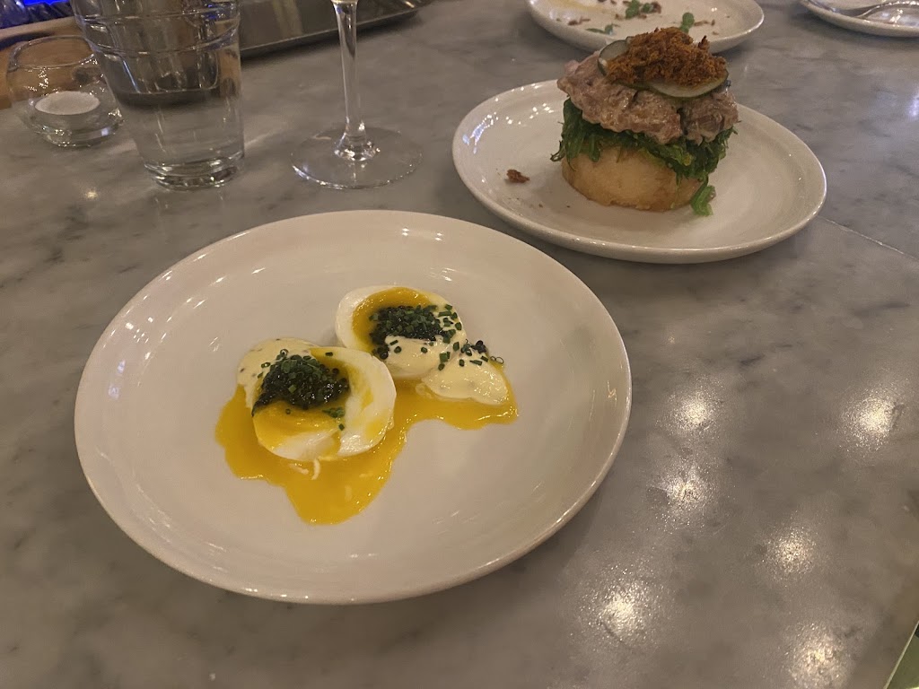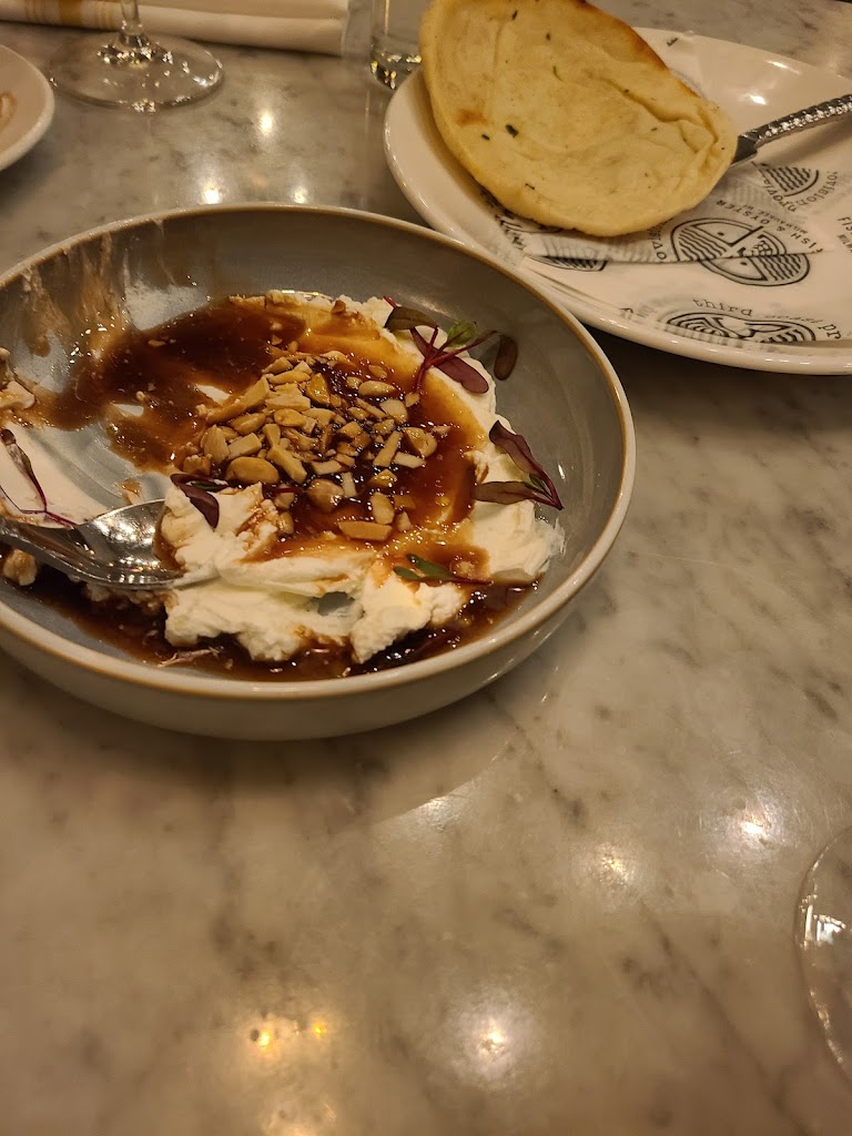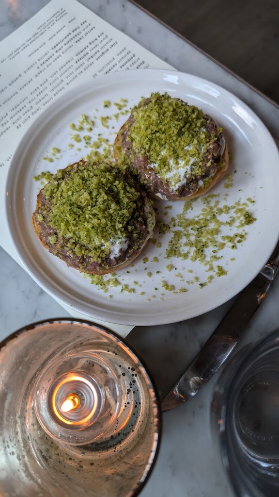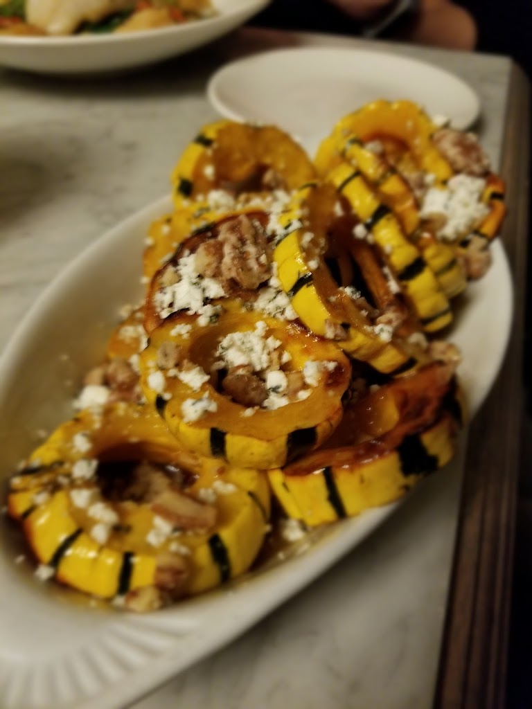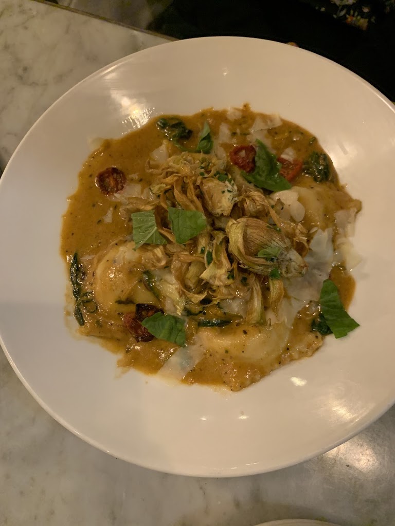 We had a Saturday reservation for dinner and were seated in the upstairs dining area. I'm glad it was empty when we first got there because the tables were very close together. We started with the duck carnitas tacos and those were excellent. For dinner we had the spinach cavatelli which was outstanding and the halibut that I didn't care for and wouldn't order again. We also had the green hummus and bread, also a solid choice. We had non alcoholic drinks and the bill without tip was $126, parking we found nearby on the street. Overall the service was great and the only disappointment was the fish.