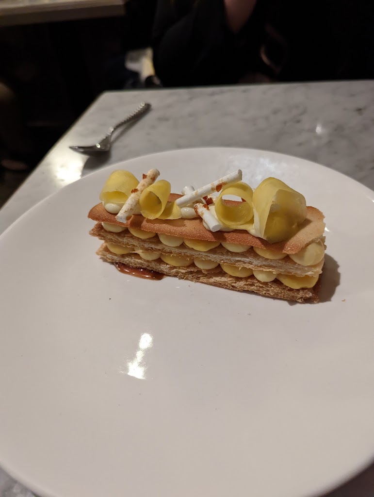 Went for a birthday dinner; no birthday specials, but still a good time. The lobster potholes were delicious and indulgent. Got the mille-feuille for dessert - felt a bit awkward eating with a spoon.