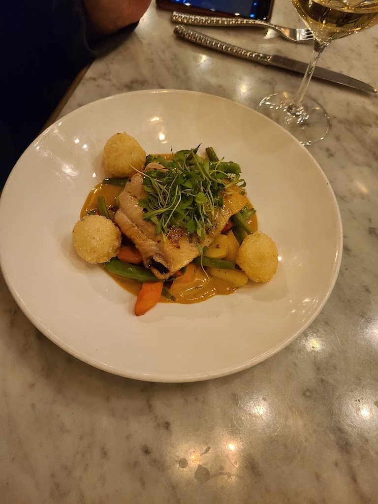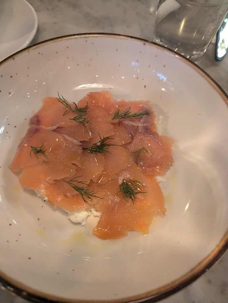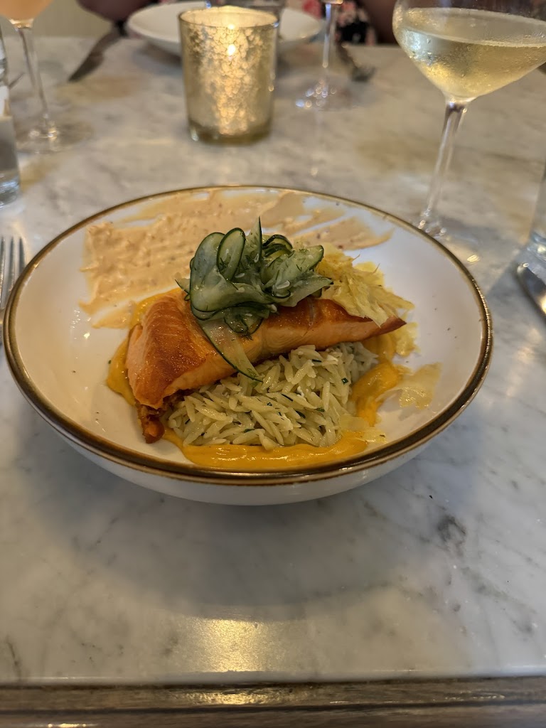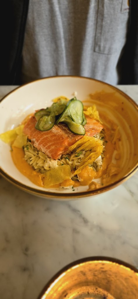 Great restaurant with very interesting food combinations whether it is the Burrata with bloodorange or the salmon as on the picture. Biggest surprise was the carrot cake as I am usually not too much of a fan but it was warm with crumble and cream - outstanding.