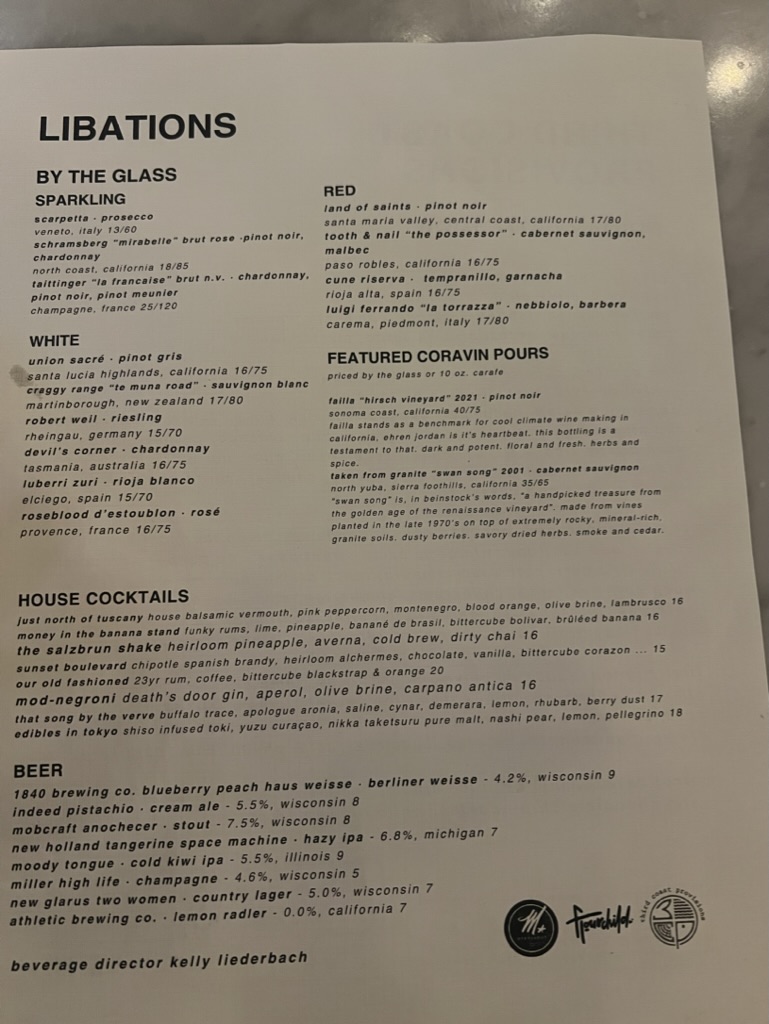 Amazing food, awesome wine list, exceptional service! My favorite spot to land when visiting Milwaukee!