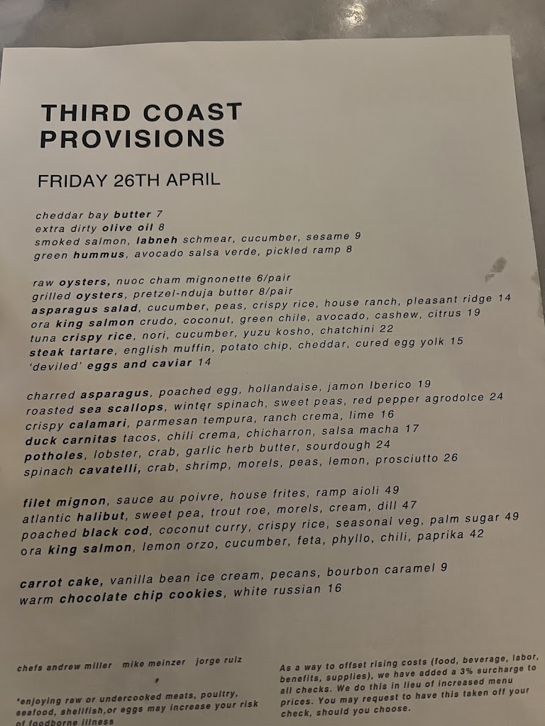 My fiancée and I dined at Third Coast Provisions for the very first time. The service, food, and atmosphere were fantastic and they made her 30th birthday extra special. Special shoutout to Ethan in the Loon Room for serving up excellent cocktails. We’ll be back!