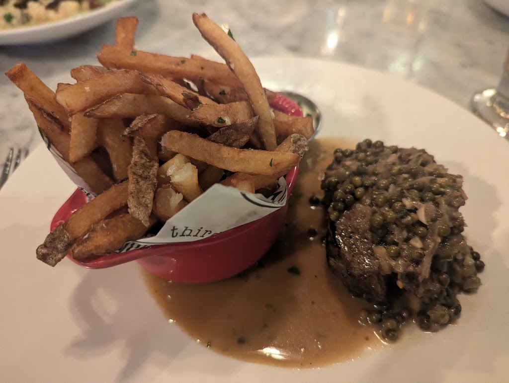Third Coast Provisions is a beautiful restaurant, perfect for this trendy stretch of Milwaukee Street. We had drinks at the bar before dinner, and it was lovely. The service was friendly, the dry Riesling from Prűm amazing, and my vodka martini good enough. Our downhill run began when the rest of our party arrived. Led upstairs to a table for five in an empty room at the back, I immediately voiced my displeasure. Told they were unable to seat us downstairs, I compromised and accepted a table over-looking the main dining room.