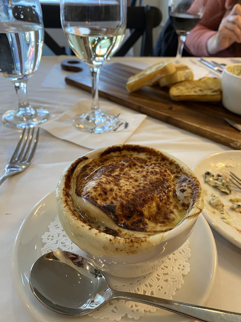 What an adorable and cozy place 😍. Food was excellent as well as the service and I love a place that prices their wine pours reasonably. We got the French onion soup and the soup of the day (wild mushroom) and the bowl is quite filling! We also got the charcuterie board which offers a generous amount of salmon (loved the fresh dill, great addition). We will make this a regular stop to and from Door County.