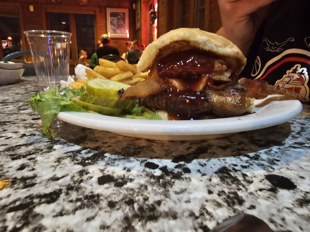 We stayed at the campground and ordered takeout. There was quite a wait for pickup but that's fine. Glad they're busy and that was a great sign. The food was great. We got a cowboy burger, fried cheese curds, fish tacos and a deluxe grilled cheese sandwich. Everything was fresh and delicious. The curds are excellent. Nice people and great food.