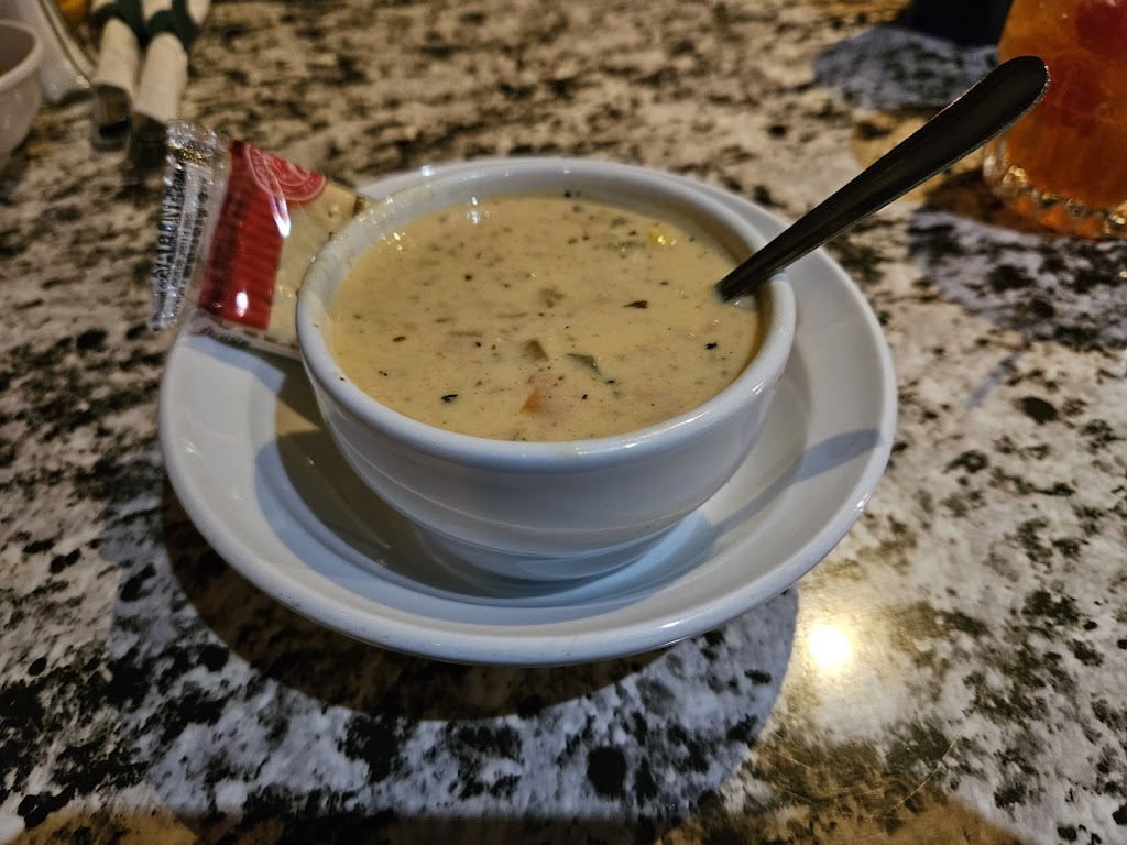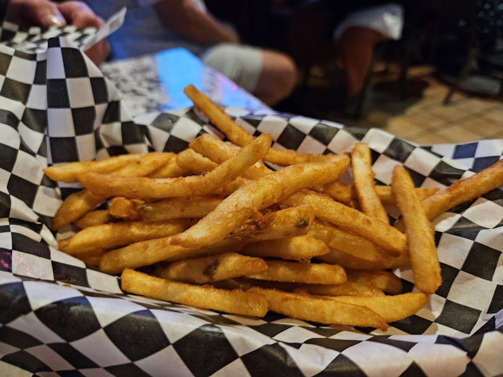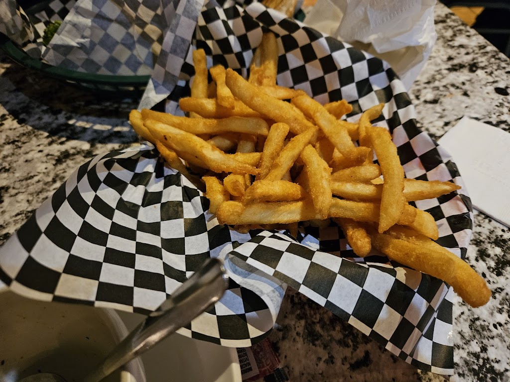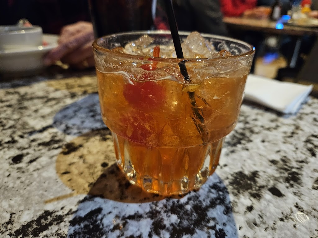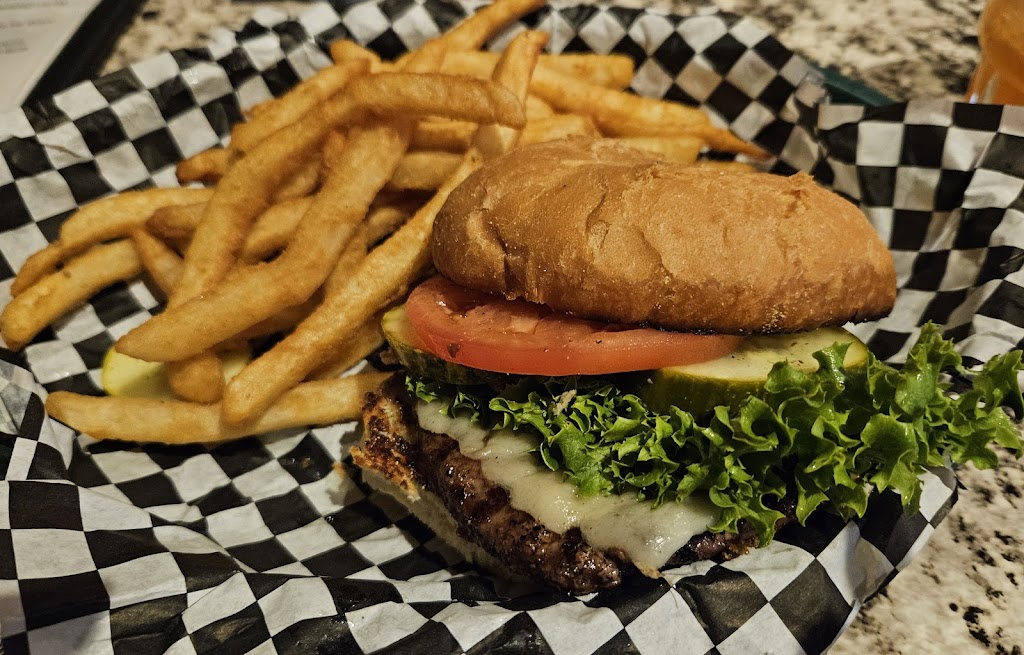 We enjoyed turkey pot pie soup, delicious burgers, a side of fries, and my old fashioned drink. Everything was amazing. We now have our go-to burger place!