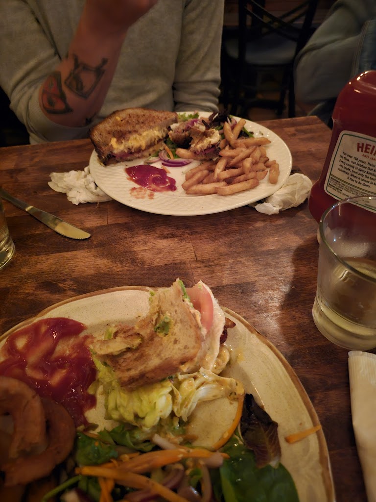 This was a pleasant surprise. The diner across the street had a long wait and the cafe across the street only served pastry for food. My mother and I stopped here and ended up having a lovely brunch. The server was very friendly and helpful. The options were great and the food was good. I appreciated the option for a salad with breakfast. The self serve coffee was perfect for me. The prices felt like they were pre pandemic, very reasonable. I like the woody, cozy pub atmosphere, especially since there was still good sunlight in the front of the restaurant. They had the option of a spacious patio out back. It seemed like they were partnered with the Cabaret across the street, I saw many postings for upcoming performances on the walls. This seems like a great neighborhood spot.