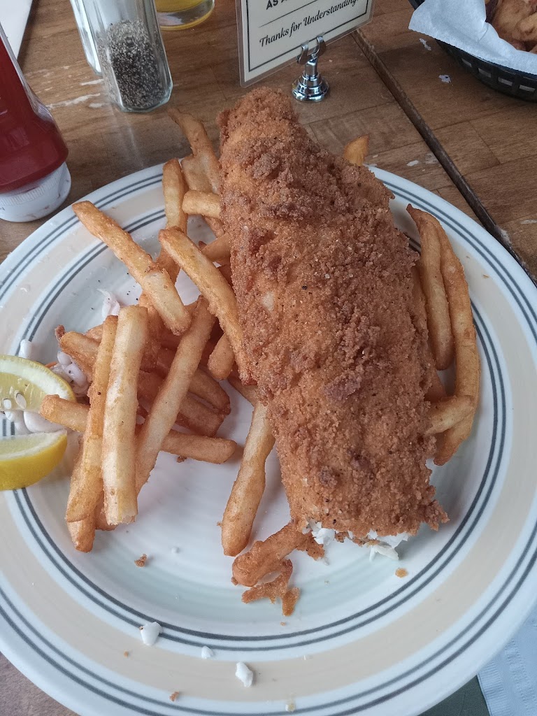 This was our first time dining here. Highly recommended now I know why! Wait time was a little long but we were informed of the wait time ahead of us being seated. Our fish dinner was wonderful with nice portions. Best fish we’ve had in a very long time. Our server was great always checking on us and very attentive to our needs. Cooks kiss! We will definitely be back. Thank you, well done!!