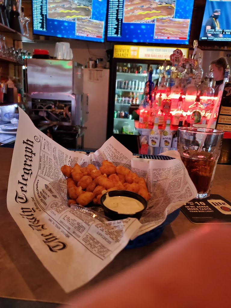 Bartender friendly, nice atmosphere ordered a burger and the cook put his hand in the olive tray with out using thongs or a fork. He should have taken the container to the kitchen. Kind of a turn off especially in the Covid situation.