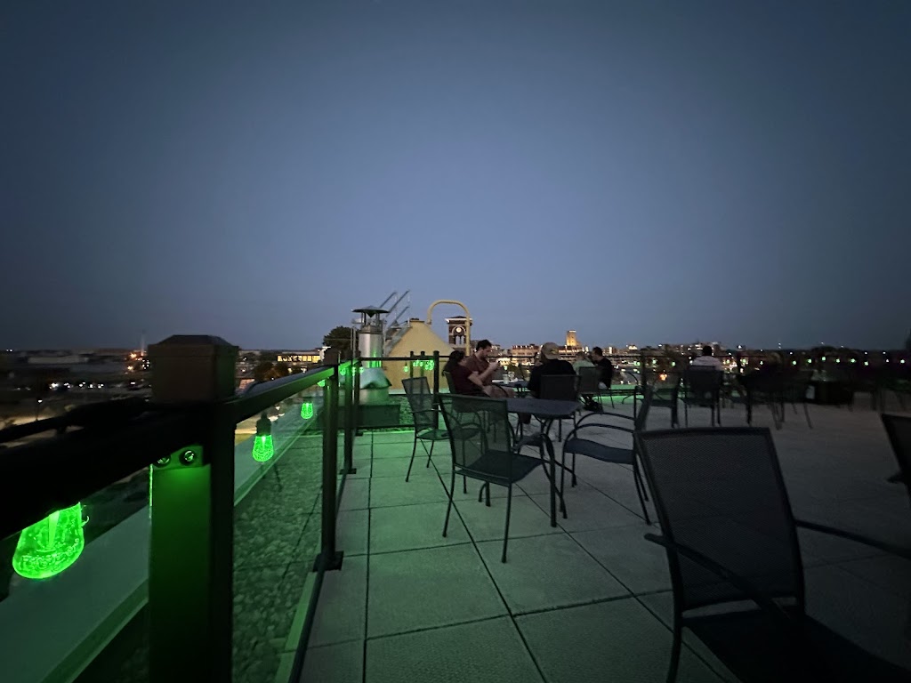 An amazing rooftop and bar! Great place for small events! My cousin just proposed today and she said YES!