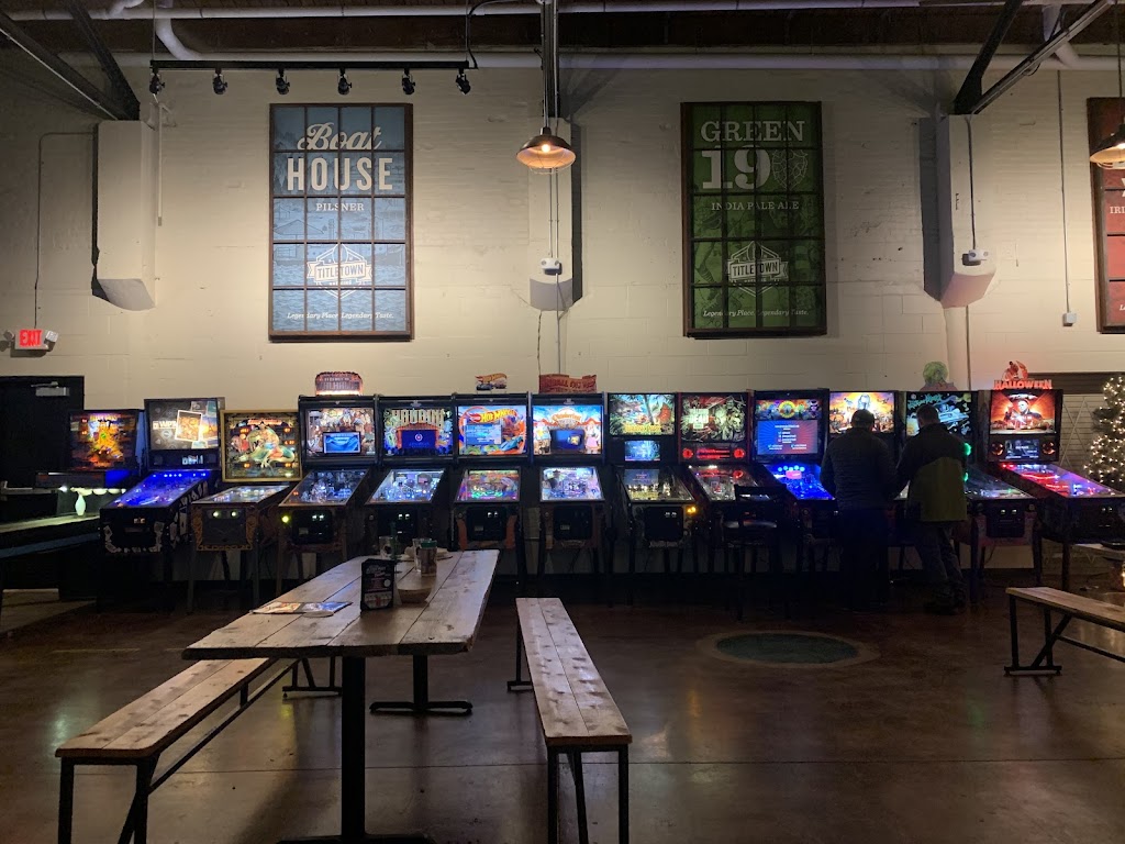 Brewery is split in 2 sections. We visited the rooftop section. Food was good. We had the Mac and Cheese and the nachos which were both hits with the kids. The patio provided a great view of downtown Green Bay. Bar tender was very friendly. There are several dartboards to play while enjoying your beer. The downstairs was closed as a big storm had moved through the night before our visit and they were having power issues. Would have liked to have tried their collection of pinball machines.