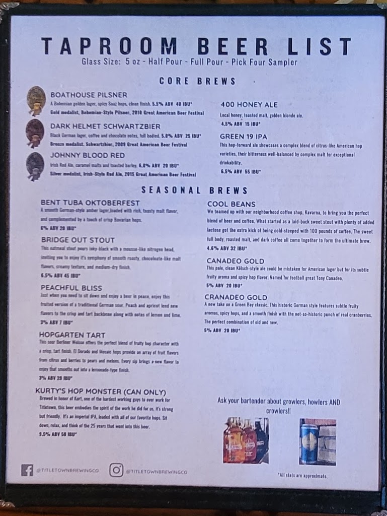 I’m sorry, I worked restaurant for a dozen years. Kitchen, host, server, manager. This culture of “tipping” everyone that half looks at you is getting out of hand. Titletown Brewing, if you are going to prompt me to pay a tip and force me to tip at the very beginning of our interaction, then you need to actually provide the service that tipping represents.
