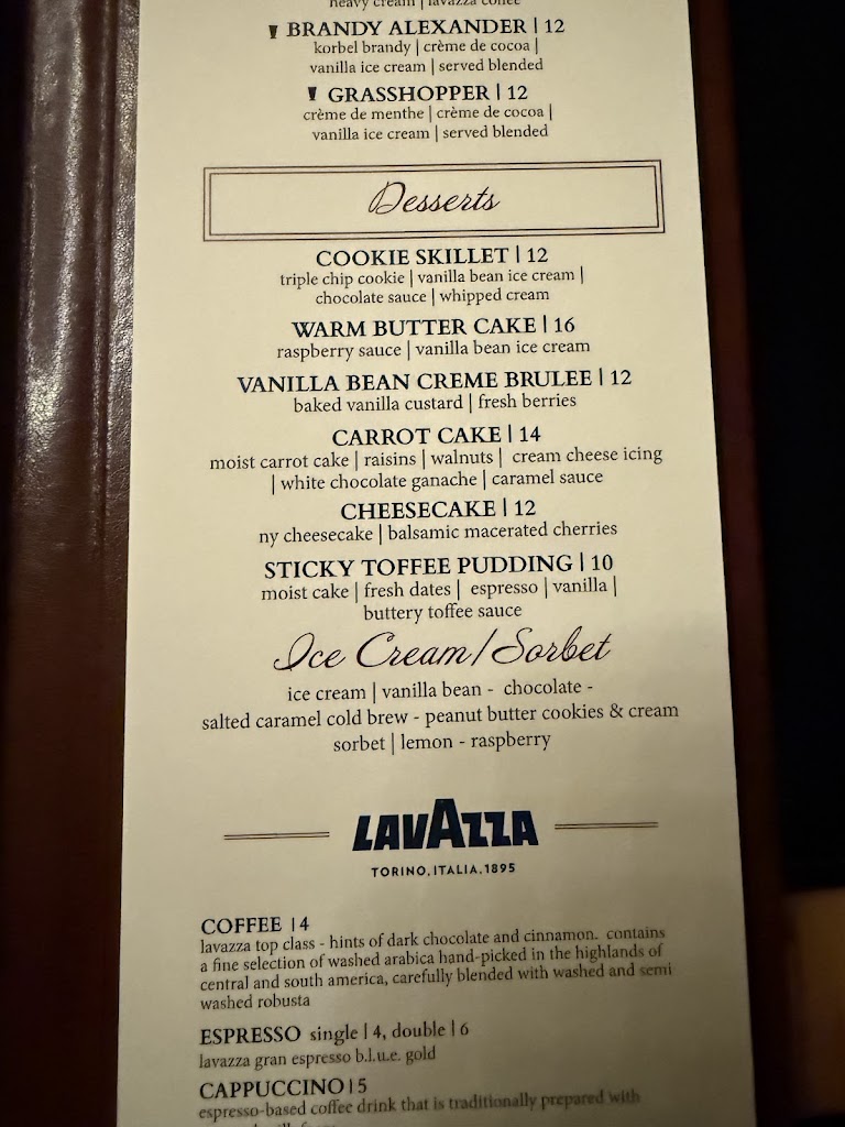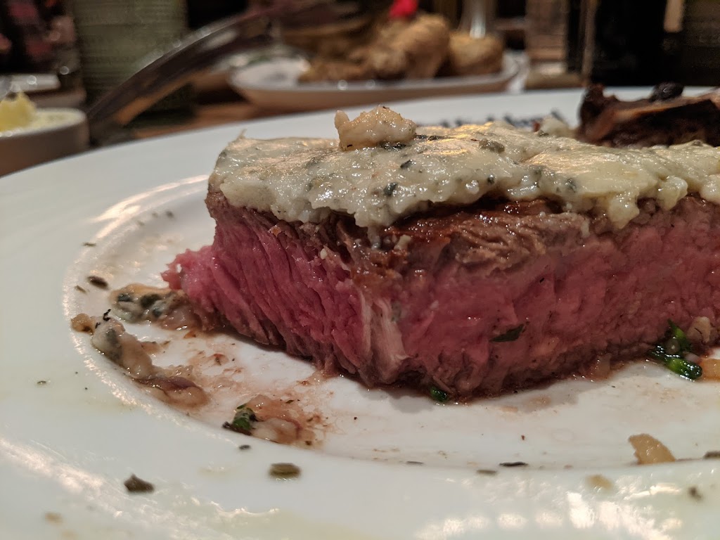 Overall, the service and atmosphere were great but the food really doesn’t live up to the price point. I’ve cooked better ribeyes on my $130 gas grill.