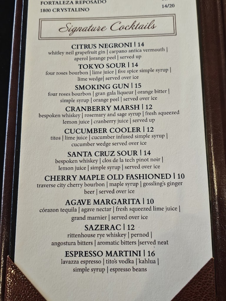 It's now open to the public! If you haven't been, you MUST go. Be prepared for a fine dining experience; yes it's expensive and fancy. We've worked our way through the menu. Goat cheese curds -yum - with a spicy jam or dip. There are a lot of dishes with an Asian flare. The green bean side is delicious. I would not recommend the swordfish or octopus, but everything else has been fun to try. The menu is a la carte style, you won't really get a salad/soup, vegetable or side unless you order it separately. Expect entrees to be over $30 & sides over $12. Our favorite drink is the orange spice Manhattan and a bottle of Paradux wine. The fireplace is warm and the atmosphere cozy while swanky. Usually there's a coat check although the hostesses didn't offer it on our last visit.