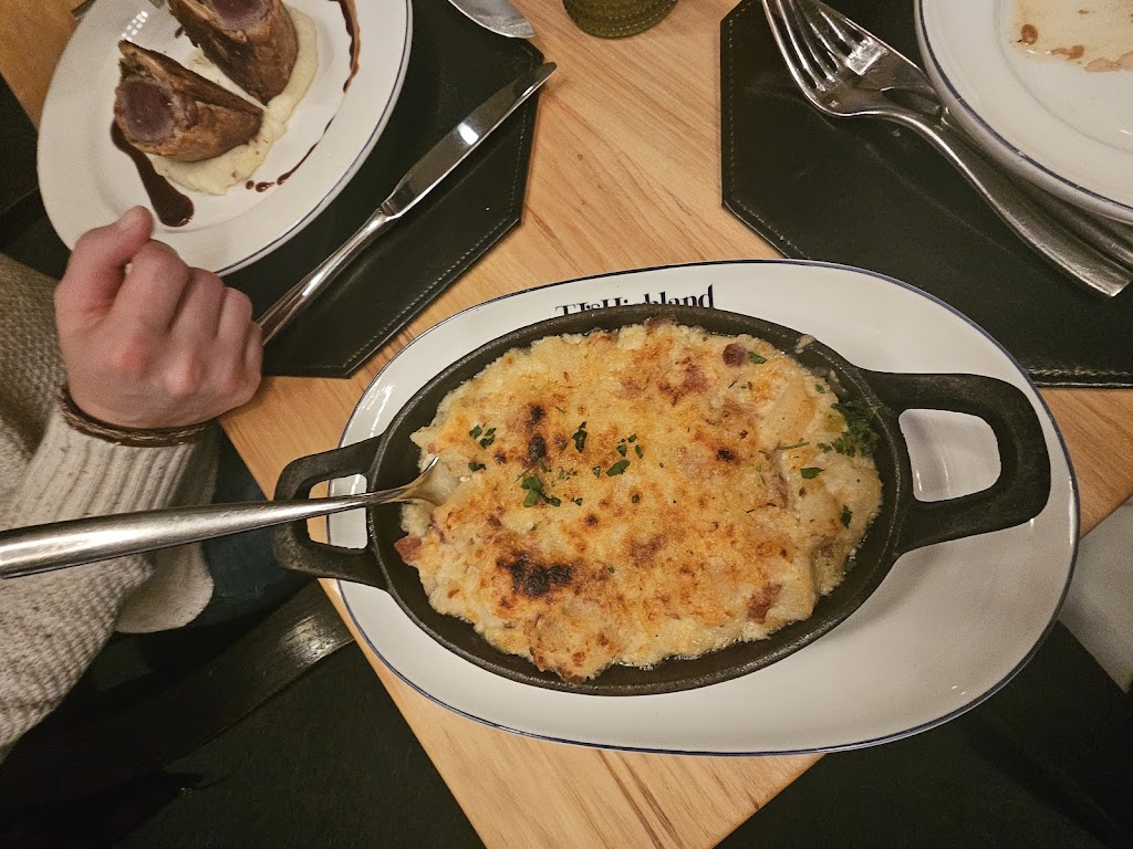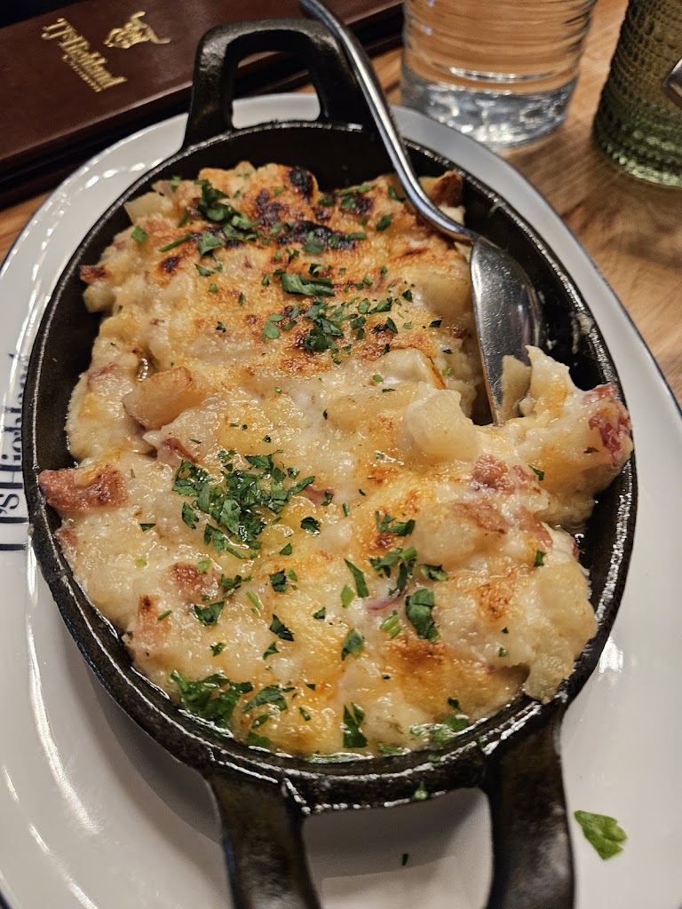 Potatoes were exactly like mom's homemade mac and cheese with potatoes instead of noodles.