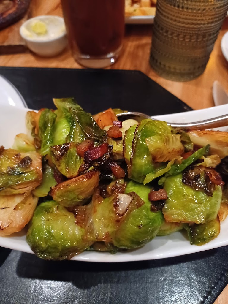 We started with the Bourbon Bacon Slab, it was absolutely delicious! I had the Beef Wellington, it was melt in your mouth scrumptious. My girlfriend ordered the 14 oz aged New York Strip steak. She was very happy, it was cooked to perfection. And she was nice enough to share a bit with me, I have to say it was extremely flavorful! As you can see by the pictures I am posting we ordered a number of sides for our meal and weren't disappointed in the quality or quantity of the food serviced.