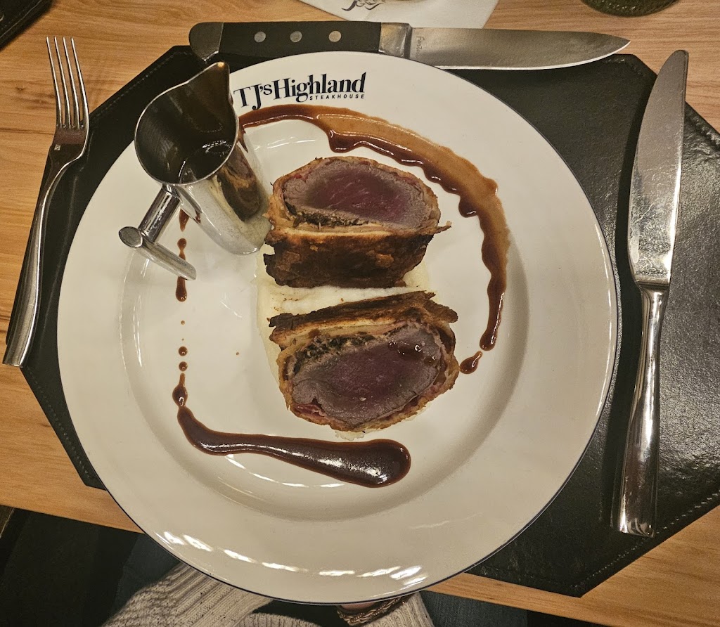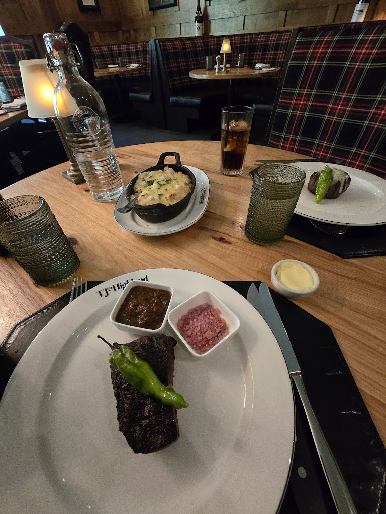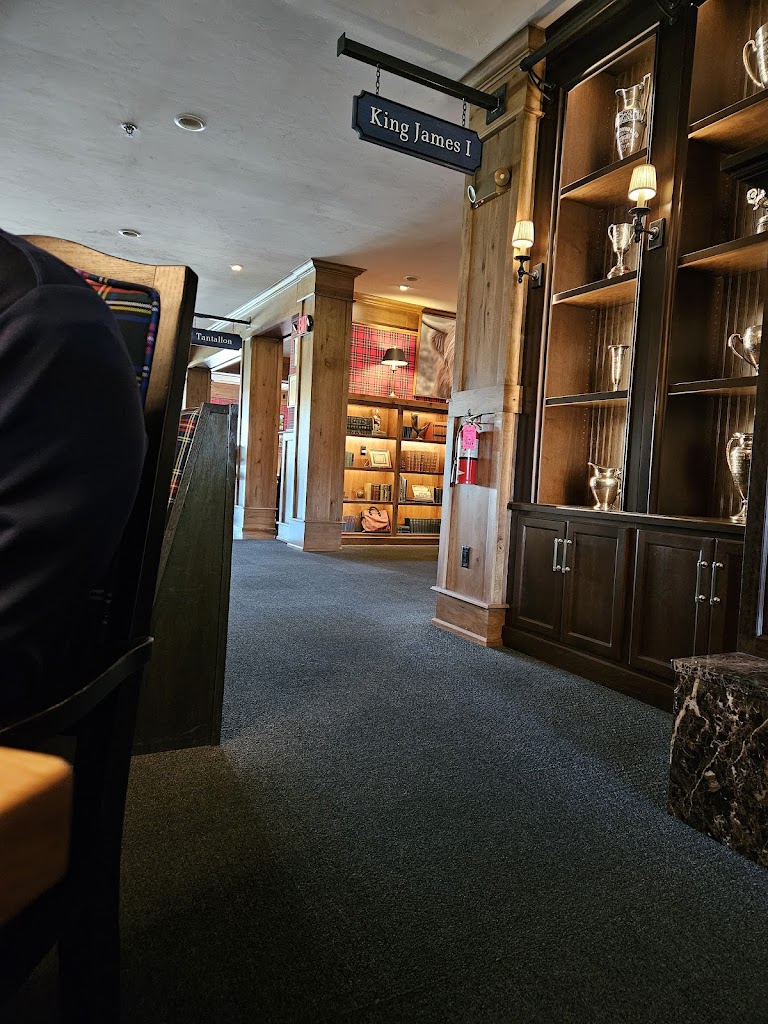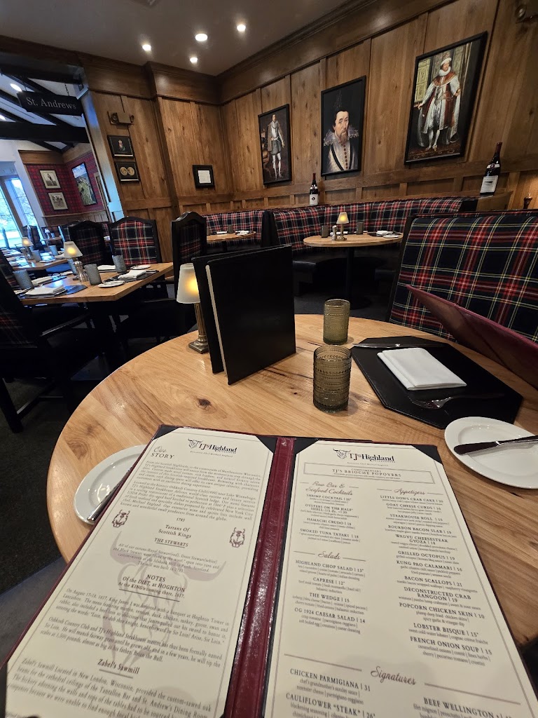 This is a very unique and charming restaurant. The rooms are all named ie St. Andrews and Queen Elizabeth I. The chairs and booths are tartan fabric. The food and drinks were fabulous. I had the lobster tail, which was tender and sweet. My husband had the Coulette Wagyu and it was cooked to perfection. We had a great experience.