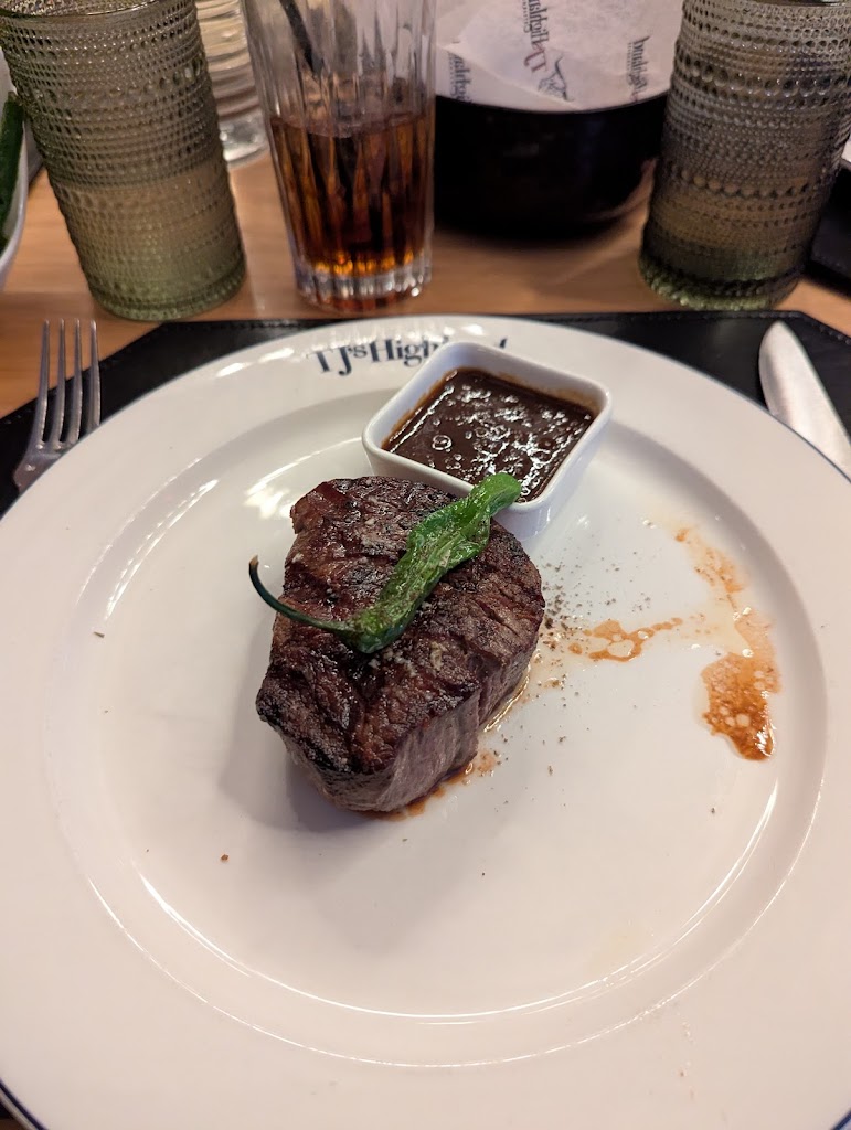 Once again I have had a bad experience with a TJ’s restaurant. We ate at TJ Highland House last year for restaurant week and it was excellent. This year it was terrible. I had the Chinese sticky pork ribs and the “Wagyu” skirt steak. Two of my ribs wer OK but the third was a dried up end piece that was tougher than jerky. The Wagyu main course was inedible. We were not given a choice of how well done “because the steak is too thin for that” according to our waitress. Mine was rare and it was so tough that I literally could chew it long enough to swallow even a small piece. I even had trouble cutting through it with a steak knife. My wife had the Whitefish served on mashed potatoes. Her fish was over cooked and dry. Not a very good showing for the one week a year you get to show something special. I have had good meals here but the last few have been very disappointing. TJ’s restaurants are very inconsistent and it is not worth the risk anymore.