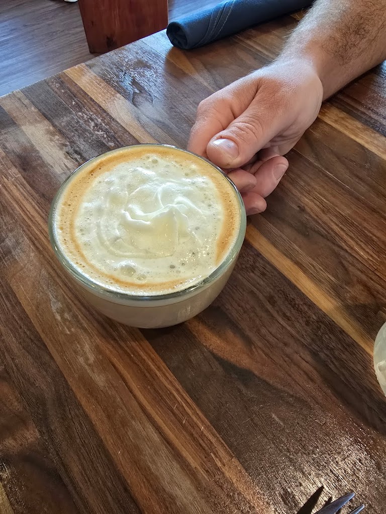 Great food, great drinks. However, we came in on Father’s Day with the expectation that it might be busy, which was the correct assumption. We were pleasantly surprised when we immediately got seated. However, because of what could only be described as poor management there were not enough staff to deliver an exceptional service experience. It took a while to for us to get water, and then secondarily, our drink and food orders in. The barista was working hard to clear a back up of drink orders so it again, took a while to get our drinks. One of which coming after we were finishing our food. The staff were really kind, but im sure some more people working would have taken stress off staff, and a better service experience.